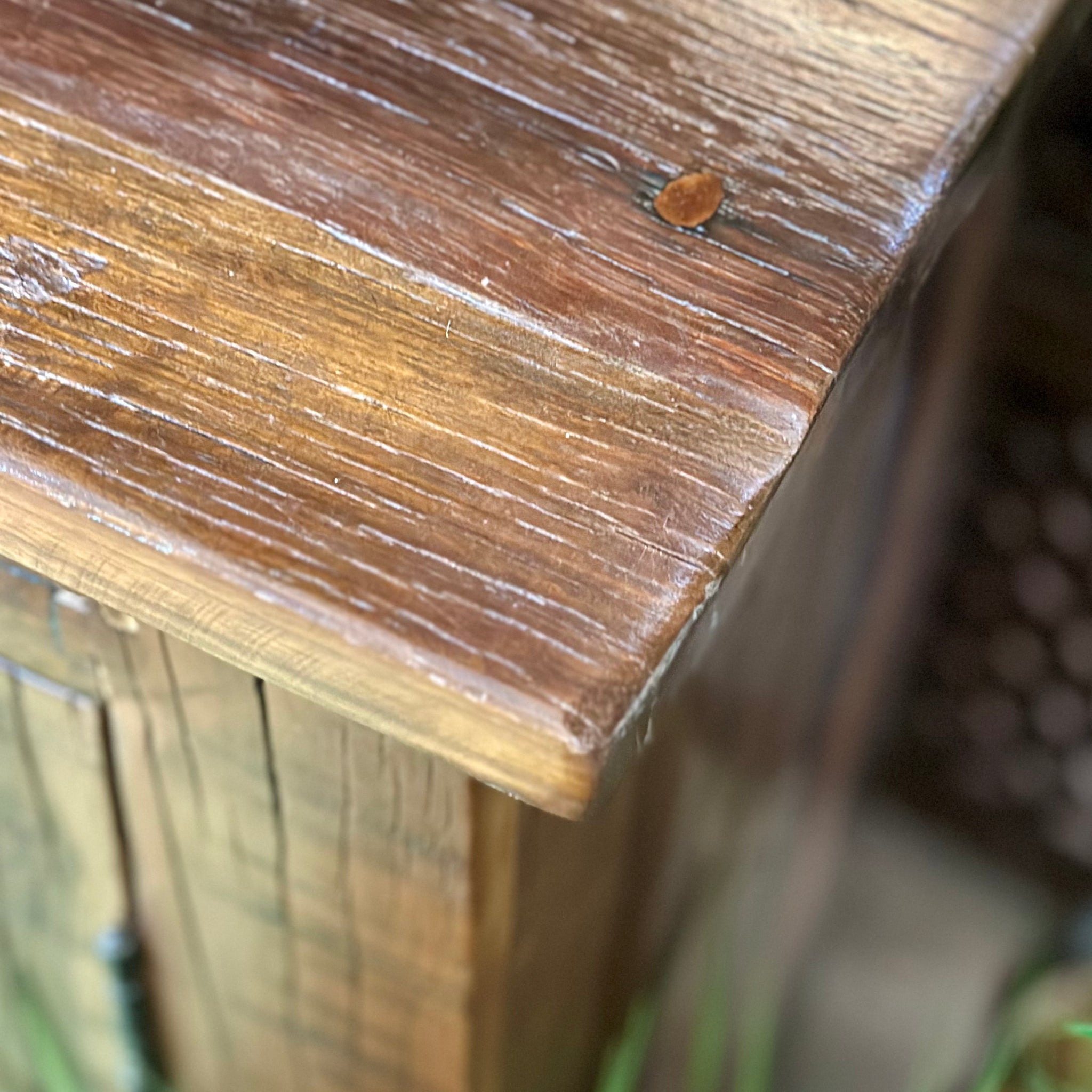 Elevate your home with this handsome cabinet by Pottery Barn. Features reclaimed wood with a rustic distressed finish, and brass finished hardware. In great condition. Retails for $1499, our price less!