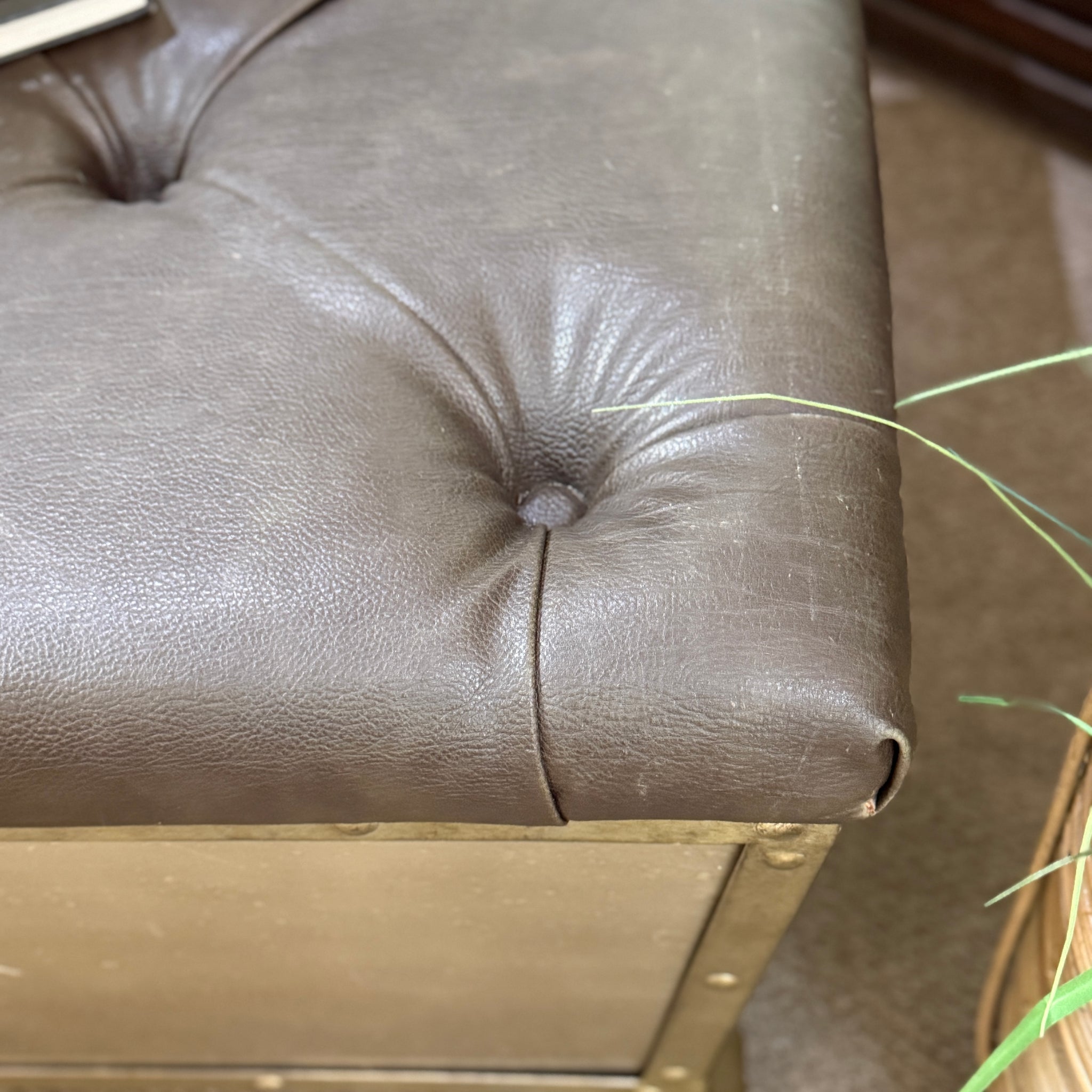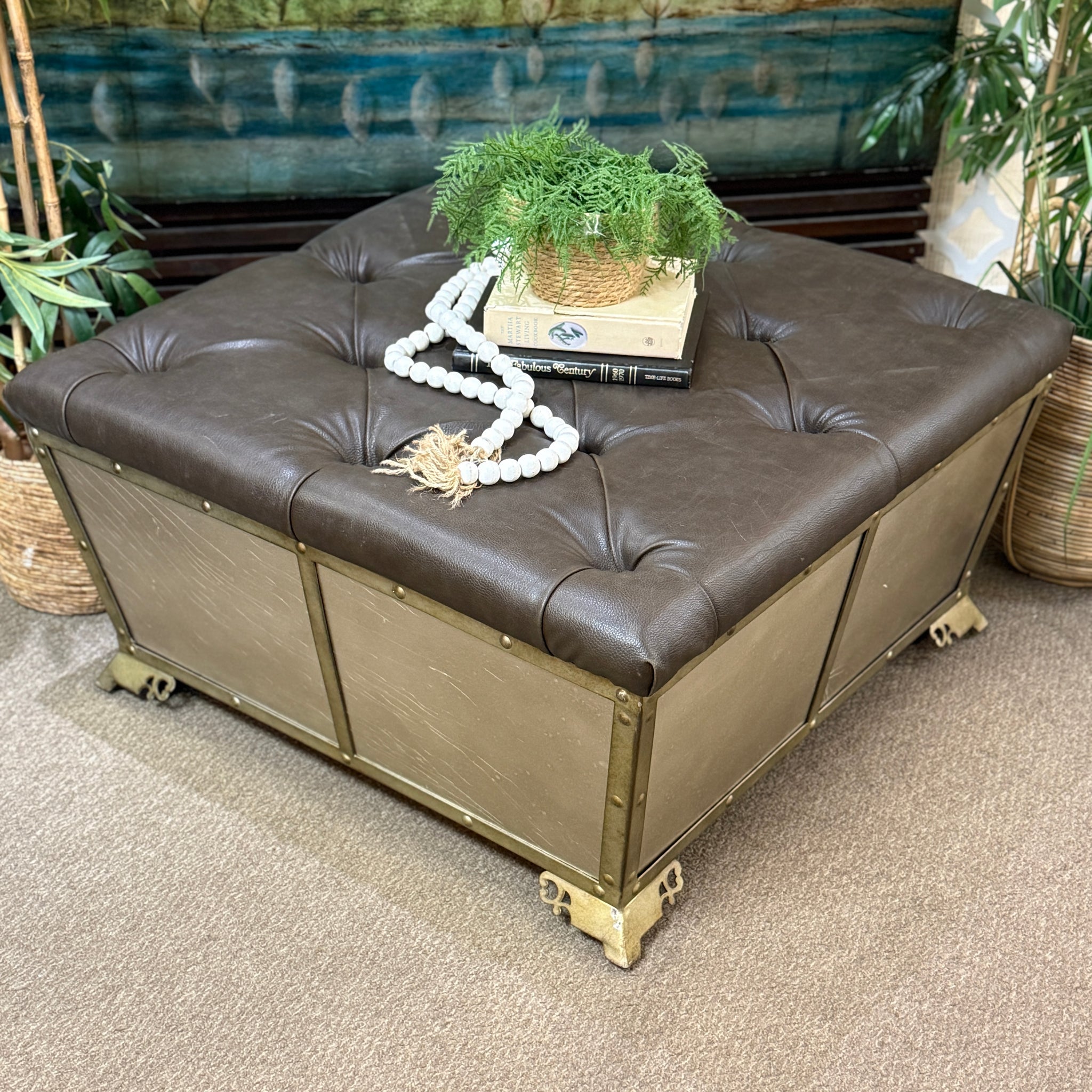 Tufted Leather/Metal Ottoman