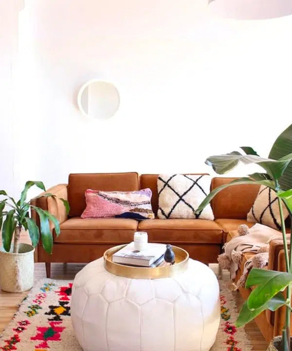 White Leather Pouf
