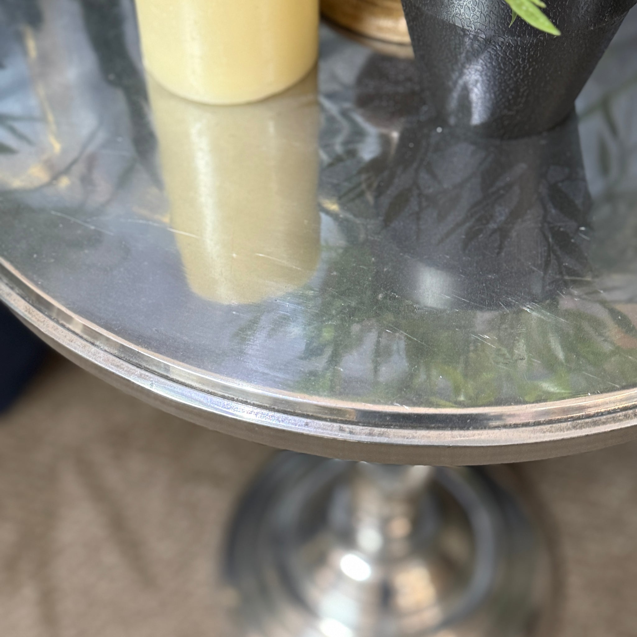 Stylish and functional! Featuring a round metal top and sturdy metal base. Retails $249+, our price less! In on consignment and in good condition.