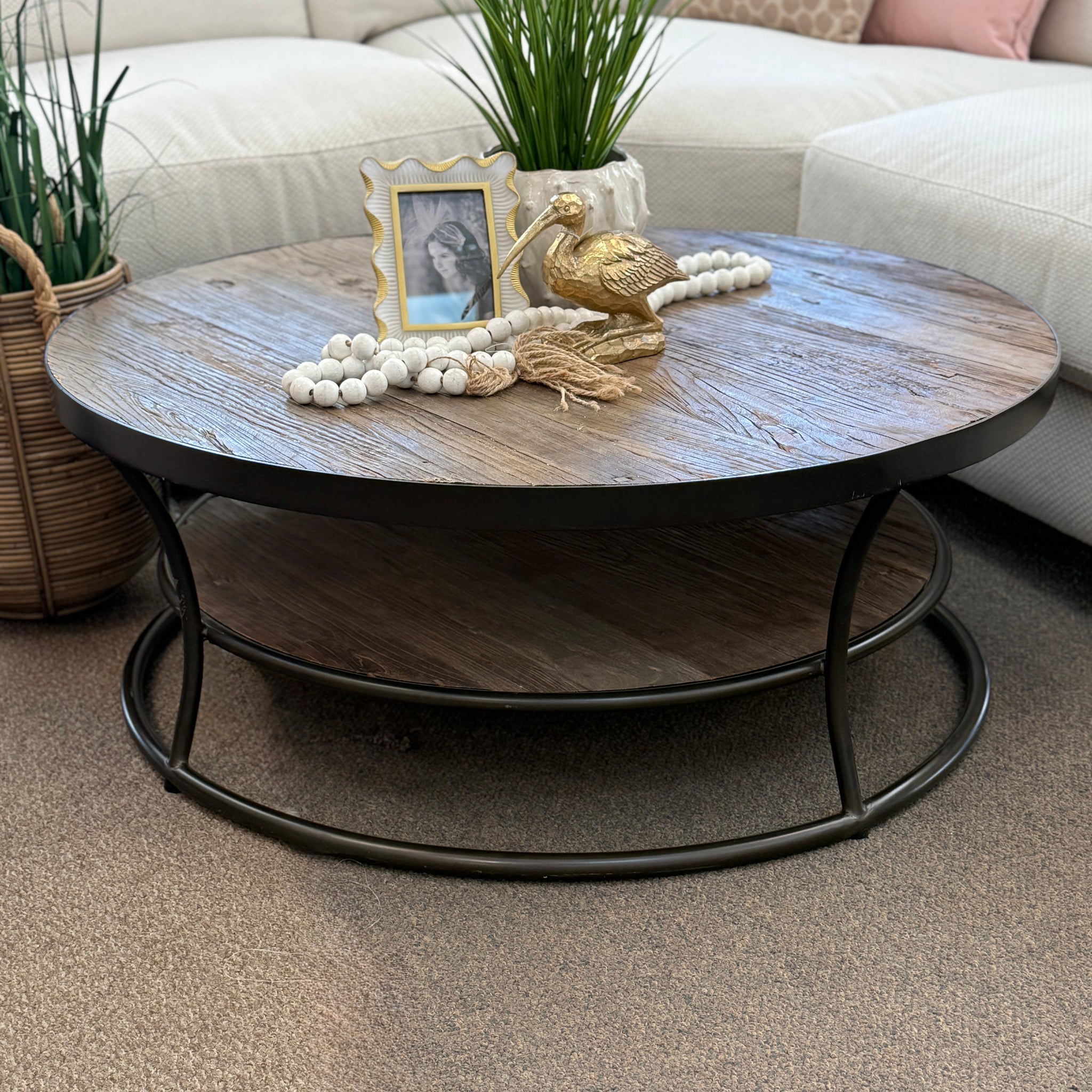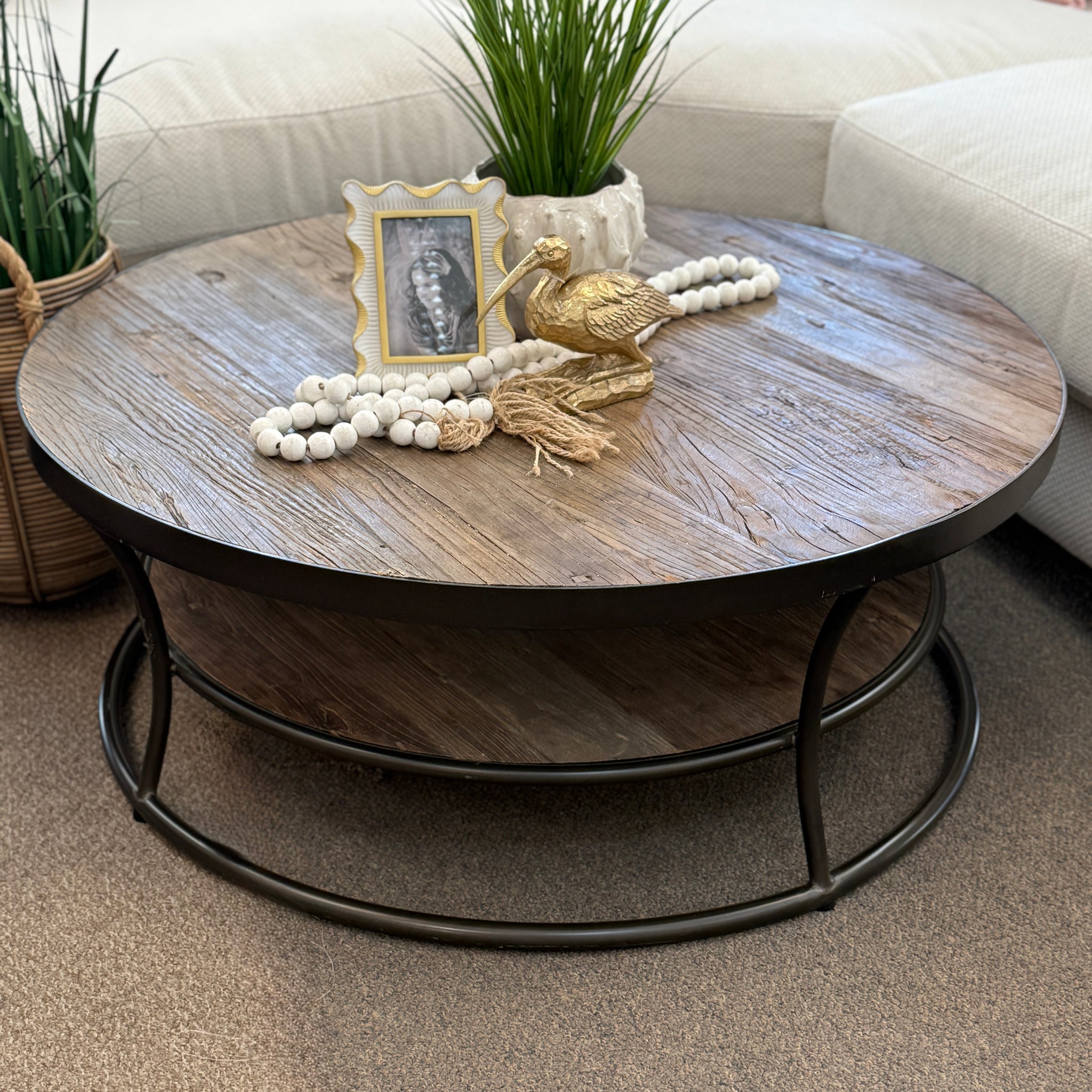 Upgrade your living room with this handsome coffee table by Pottery Barn. Features planked reclaimed wood and iron frame in a black finish. In great condition. Retails for $1199, our price less!