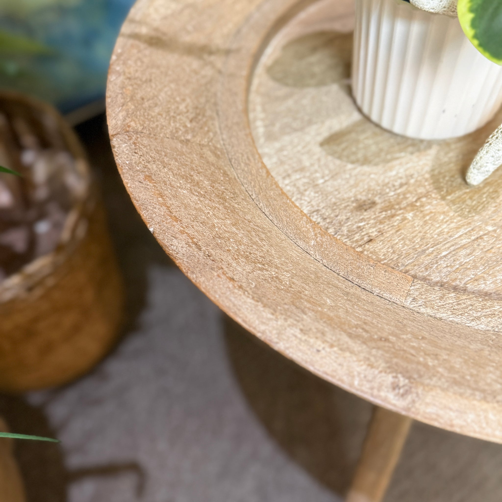 Add this Pottery Barn side table next to your favorite chair. Features solid mango wood with a prong style base. On consignment and in great condition. Retails $200. our price less!