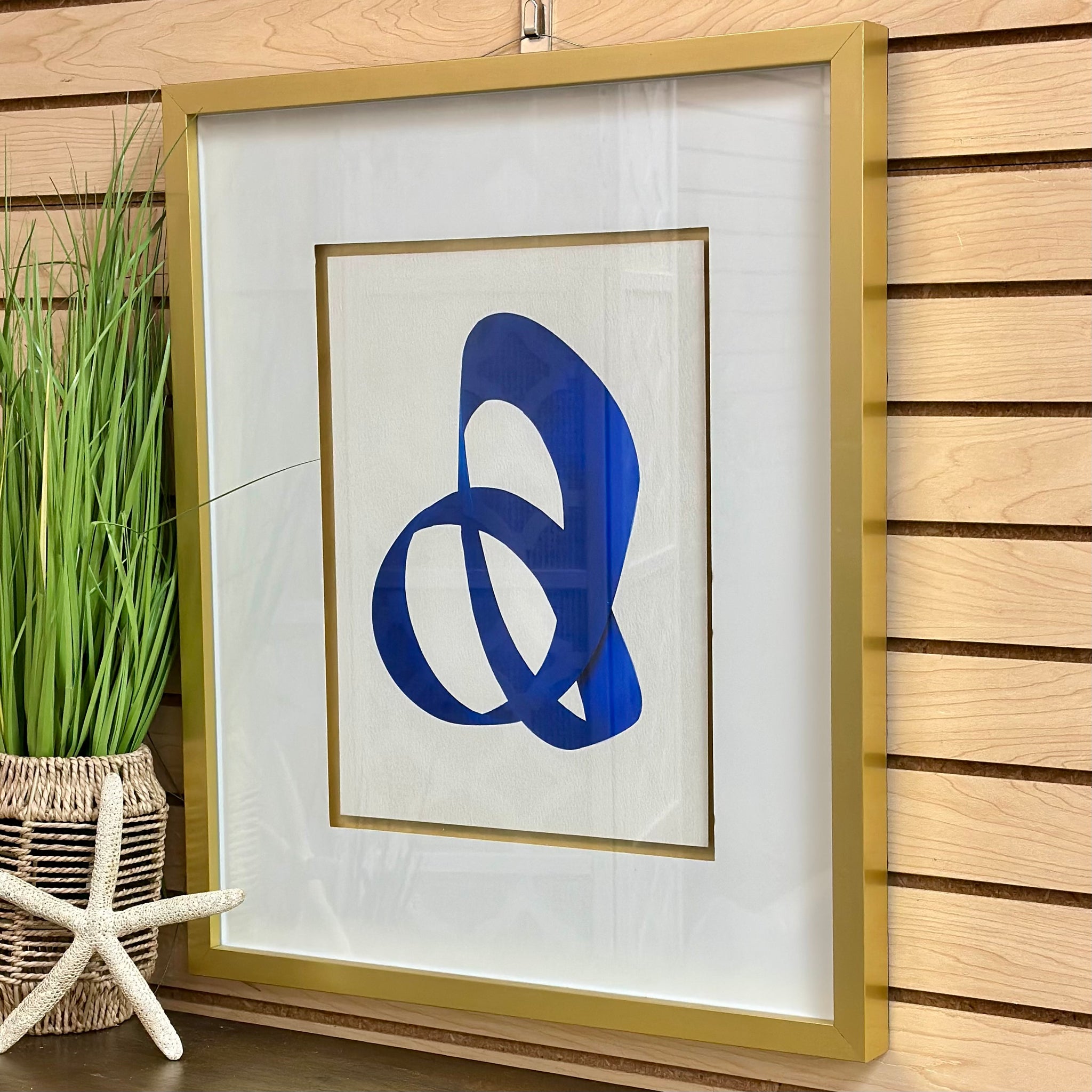Beautiful blue abstract framed in gold by John Richard. Similar ones retail $499 each, our price less and in great condition.
