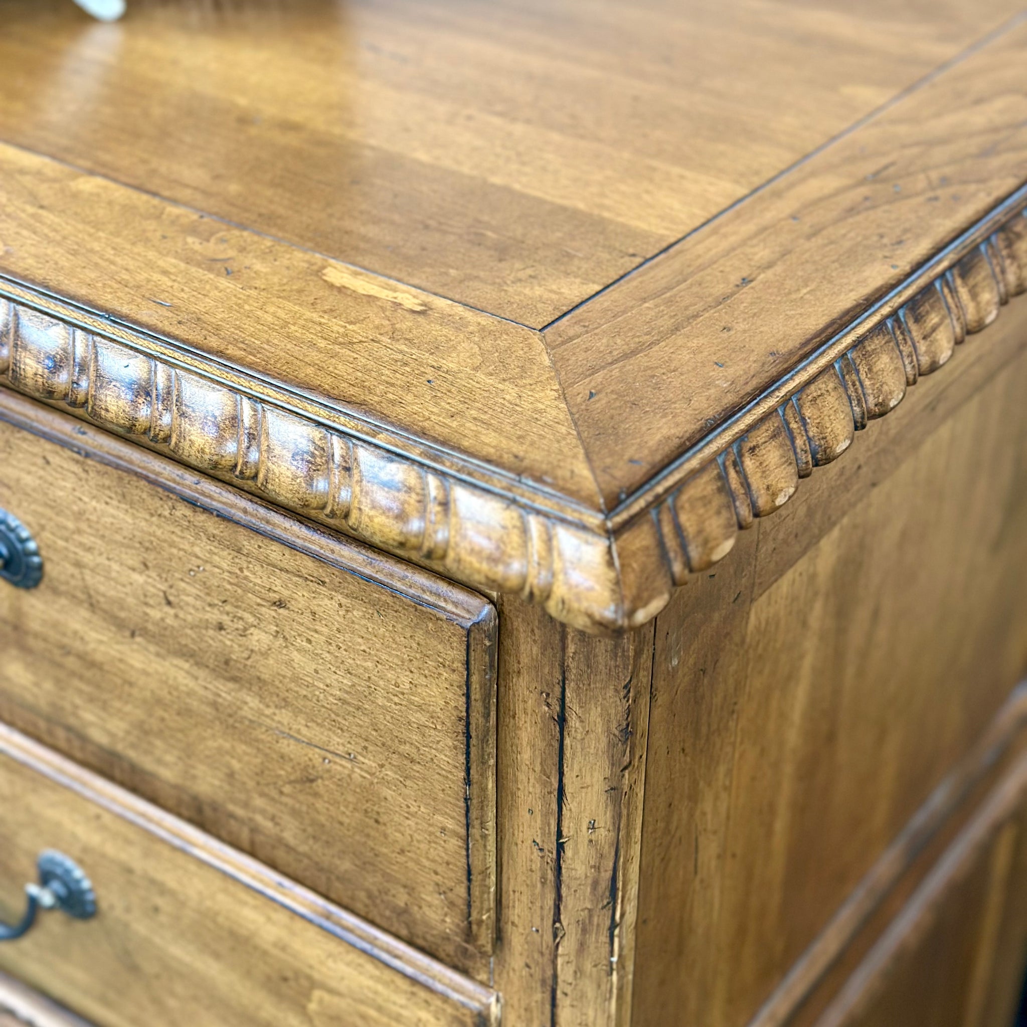 Complete your bedroom with this handsome dresser by Lexington. Features ten drawer, carved details and a warm wood finish. In great condition.