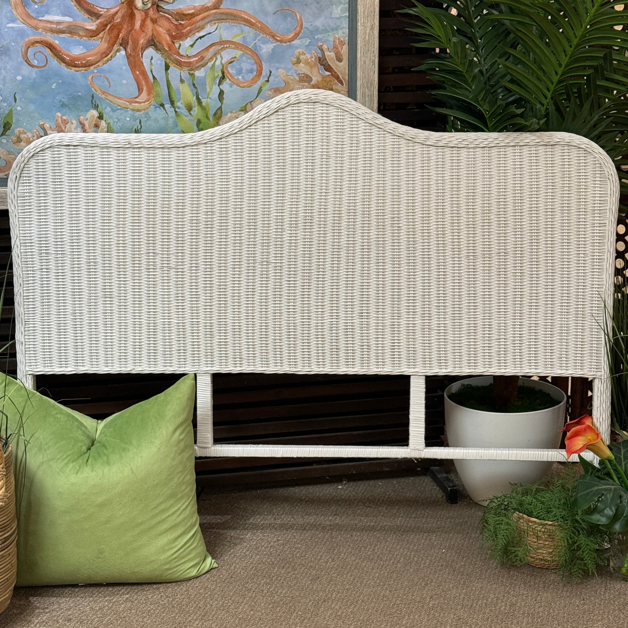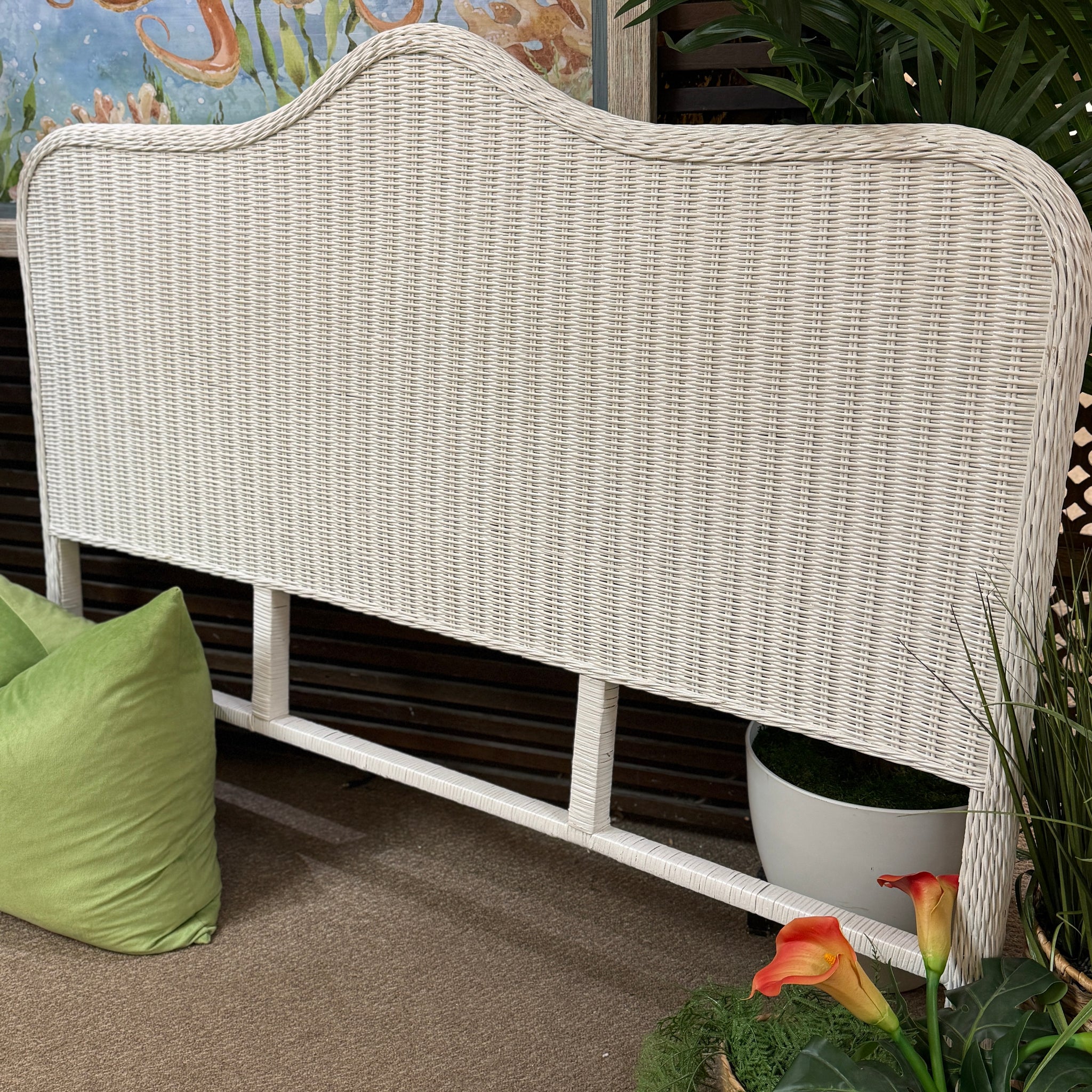 Queen White Wicker Headboard
