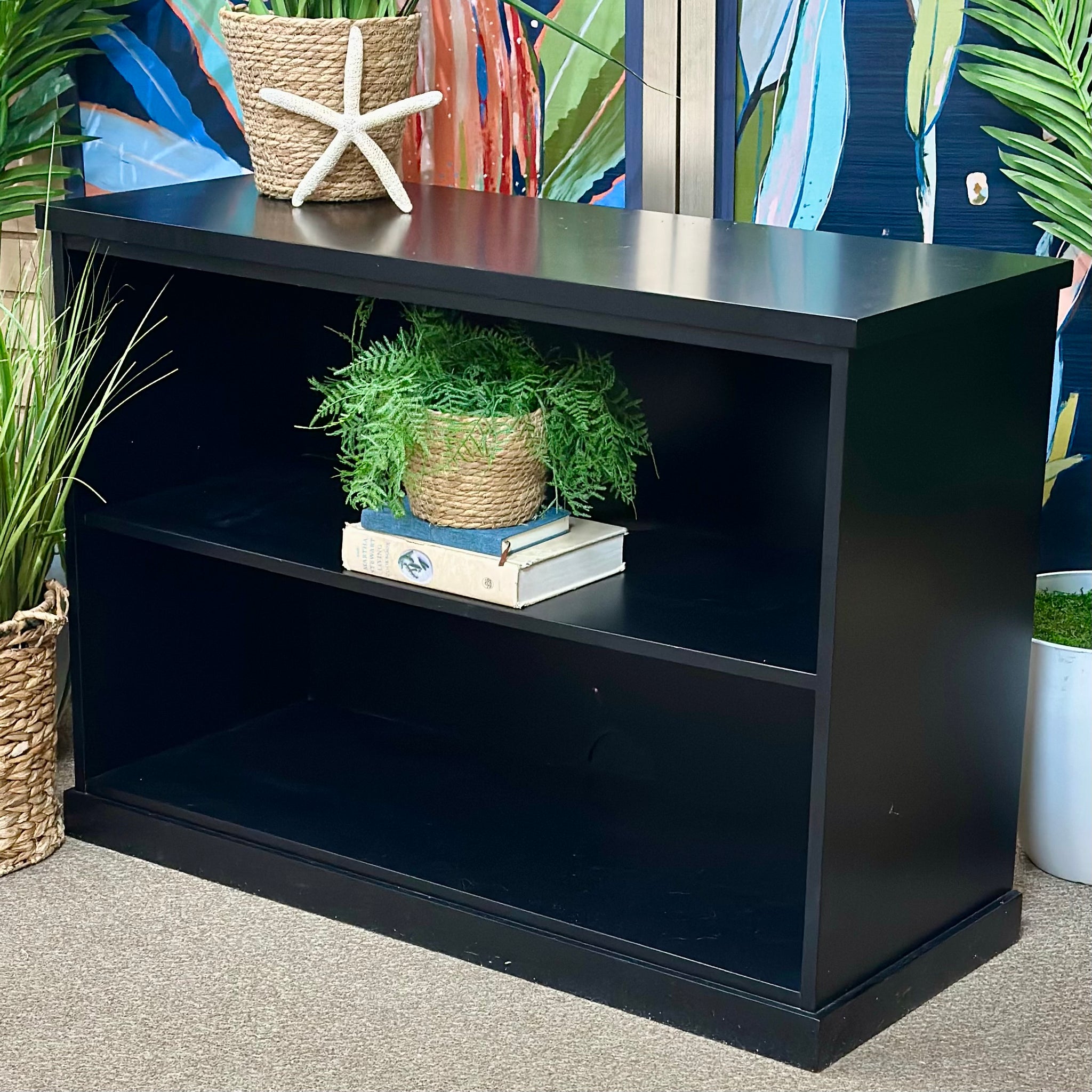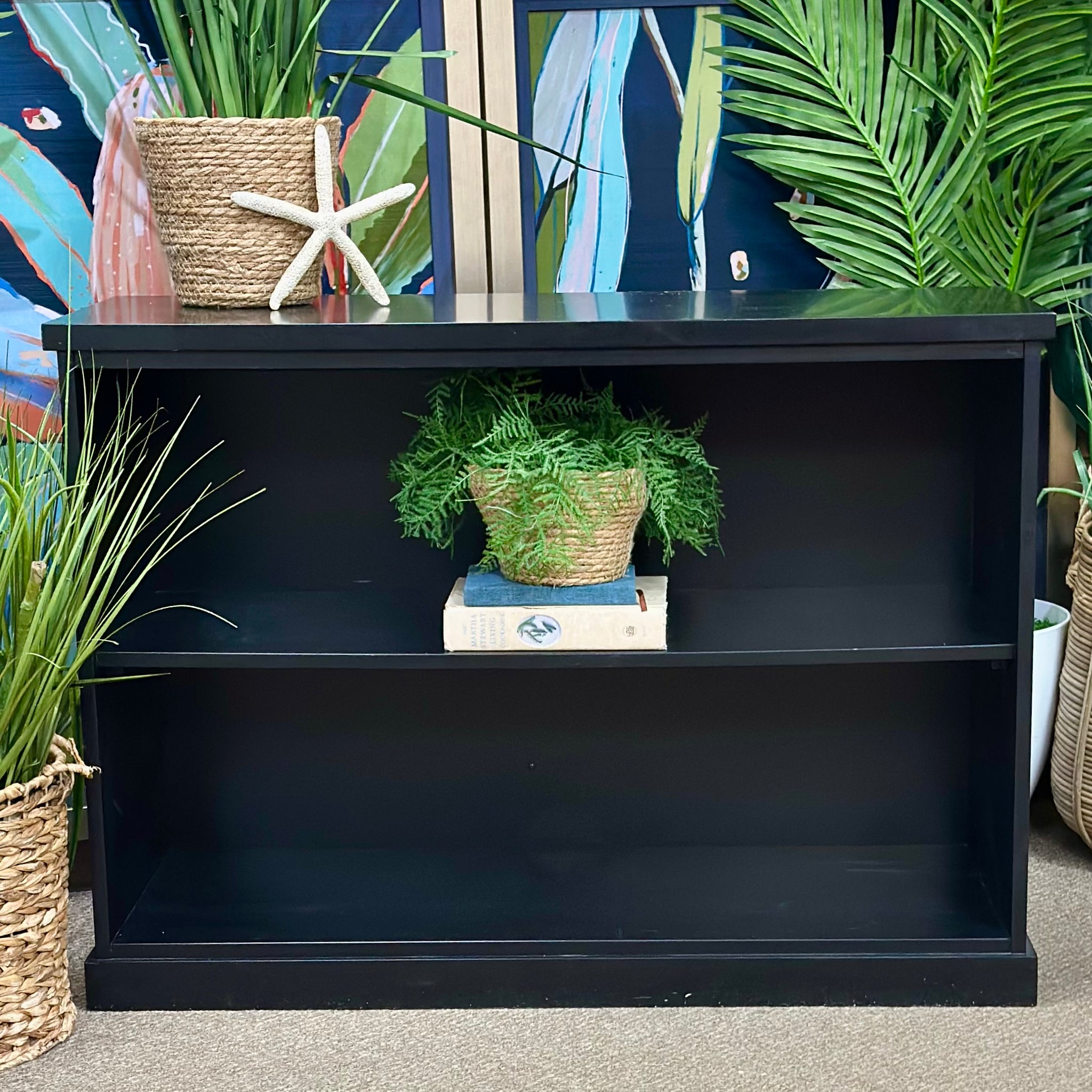 Add this handsome bookcase to any space. Features two shelves and a black finish. In great condition with some minor finish blemishes.