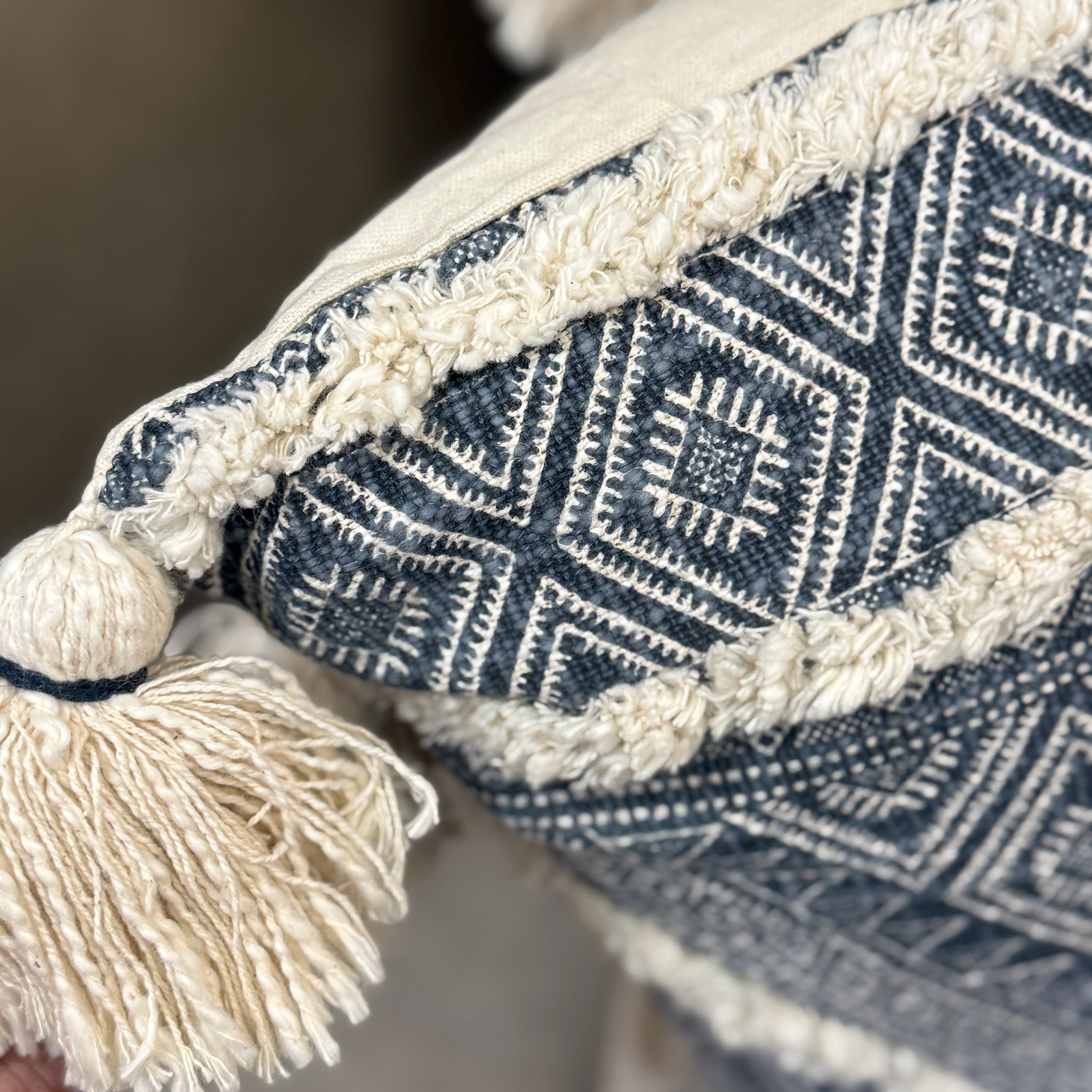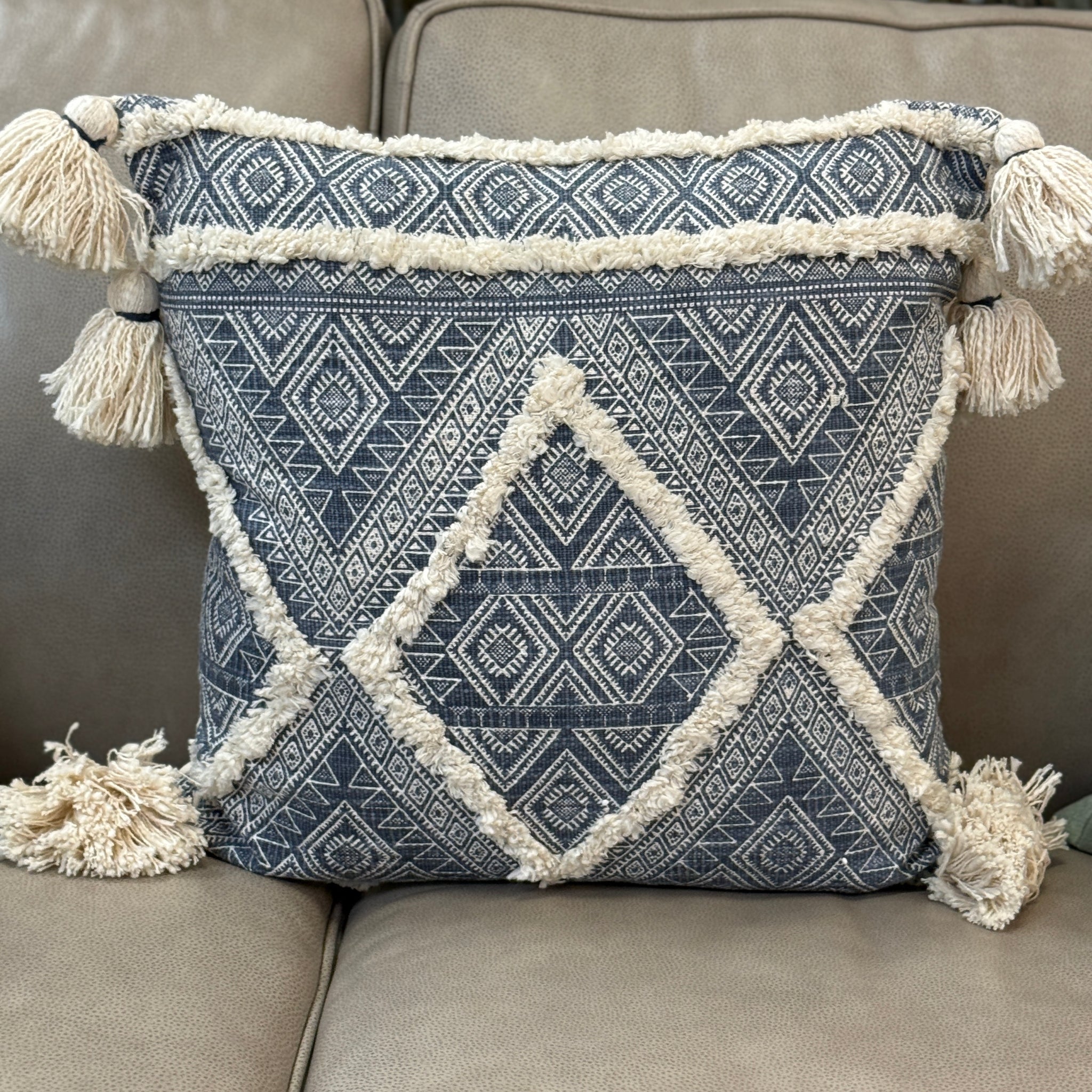Blue Diamond Tassle Pillow