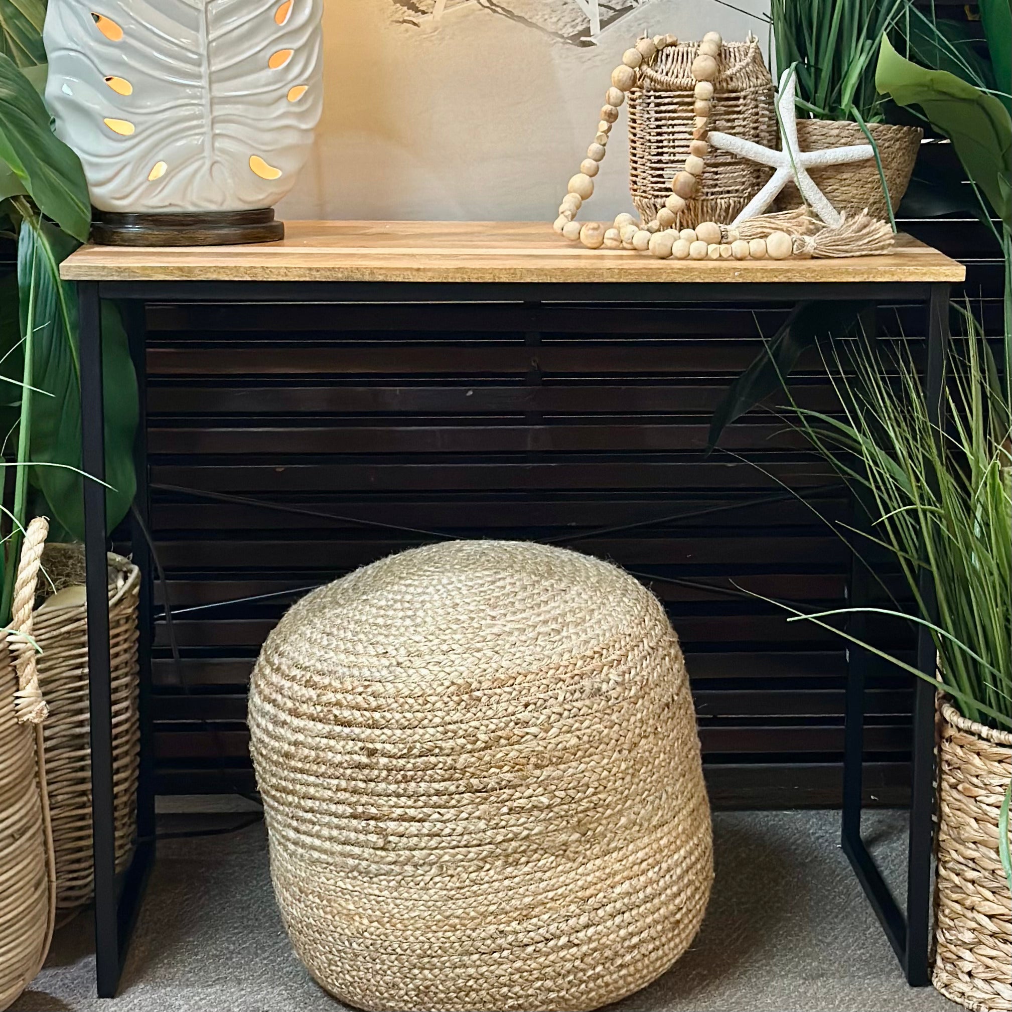 Adorable smaller scale desk made of mango wood and iron. Just in and brand new!