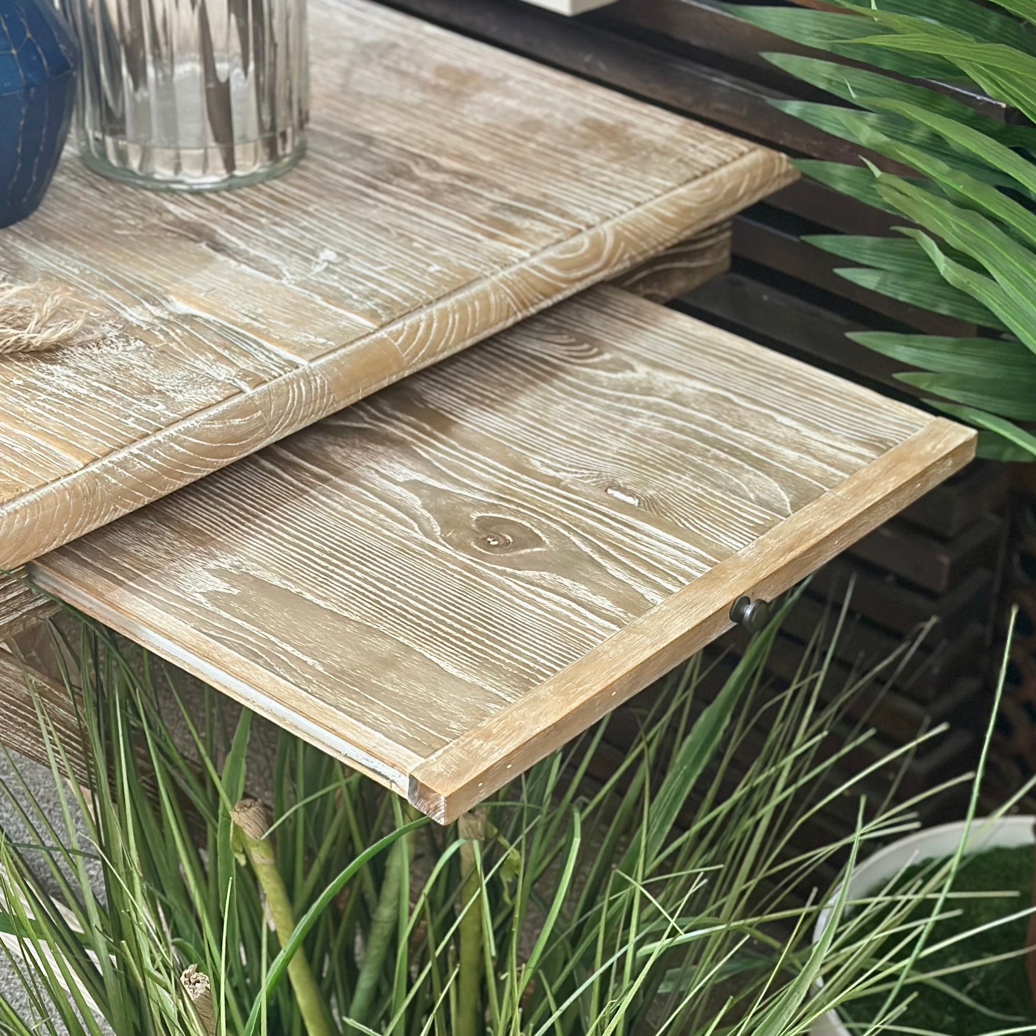 Elevate your office space with this Pottery Barn office desk. Features solid elm wood with a cerused treatment, and X frame base and a pull-out tray on the side. On consignment and in excellent condition! Retails for $900+, our price less!