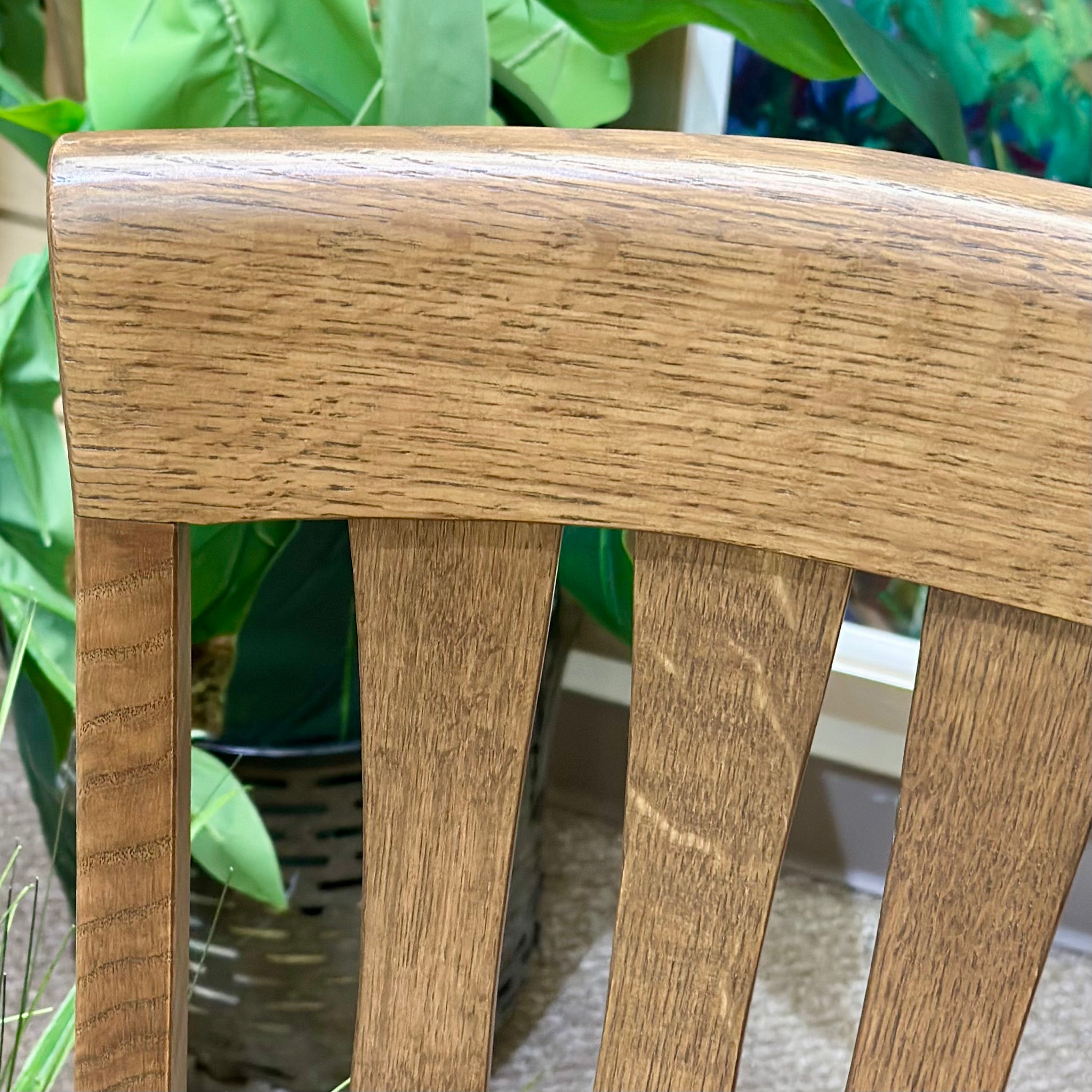 Amish made dining chair by Still Fork, known for its handcrafted and heirloom-quality craftsmanship. Handsome warm wood finish and classic slat back deisign; consignor paid $546 per chair. Our price less and in excellent condition!