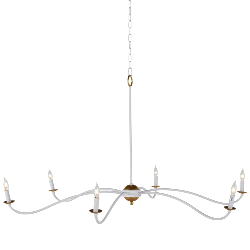 Gorgeous white and gold chandelier by Gabby. See the 'Irvine' 6-Light chandelier online for $989+, our price less and only two months old!