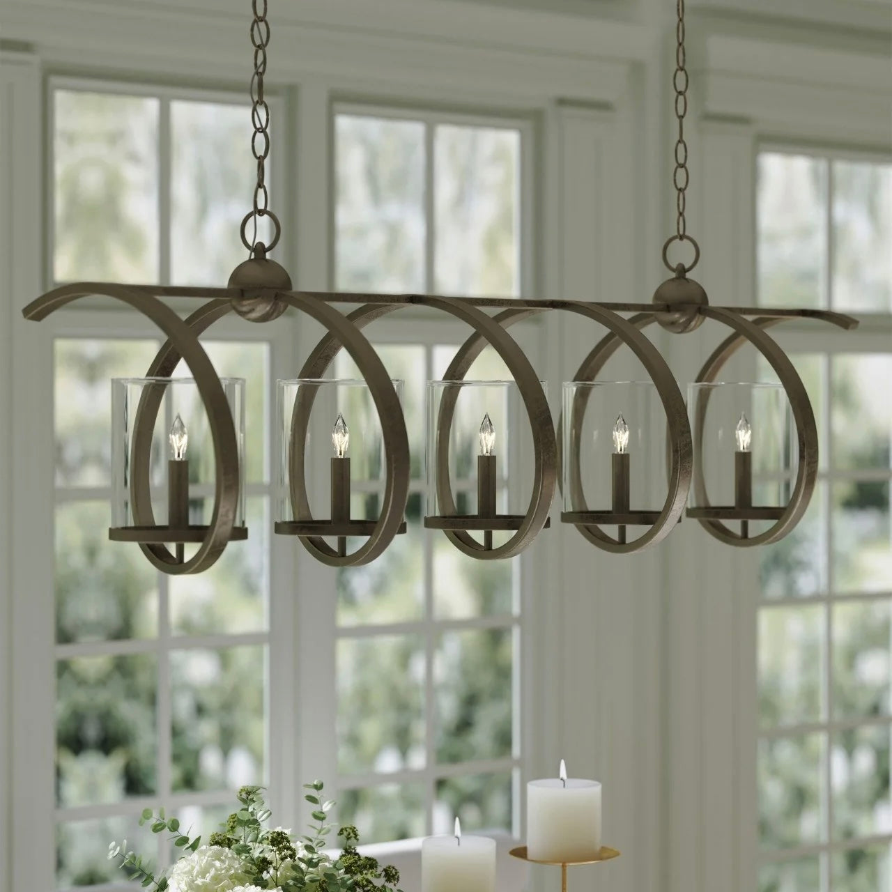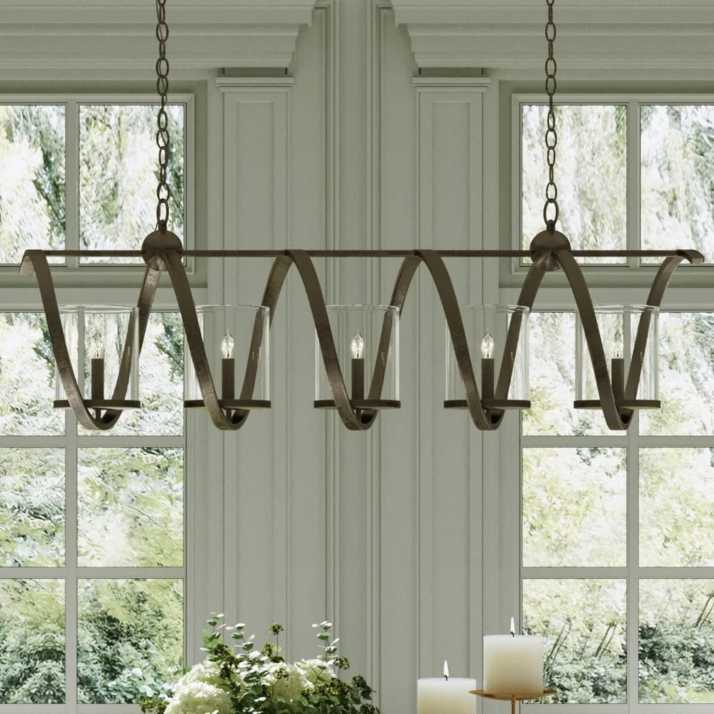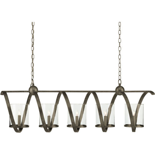 Make a statement with this stunning chandelier by Currey & Company. Features clear glass with candelabra lights on a spiral coil frame. In on consignment and in excellent condition. Retails $2173, our price less!