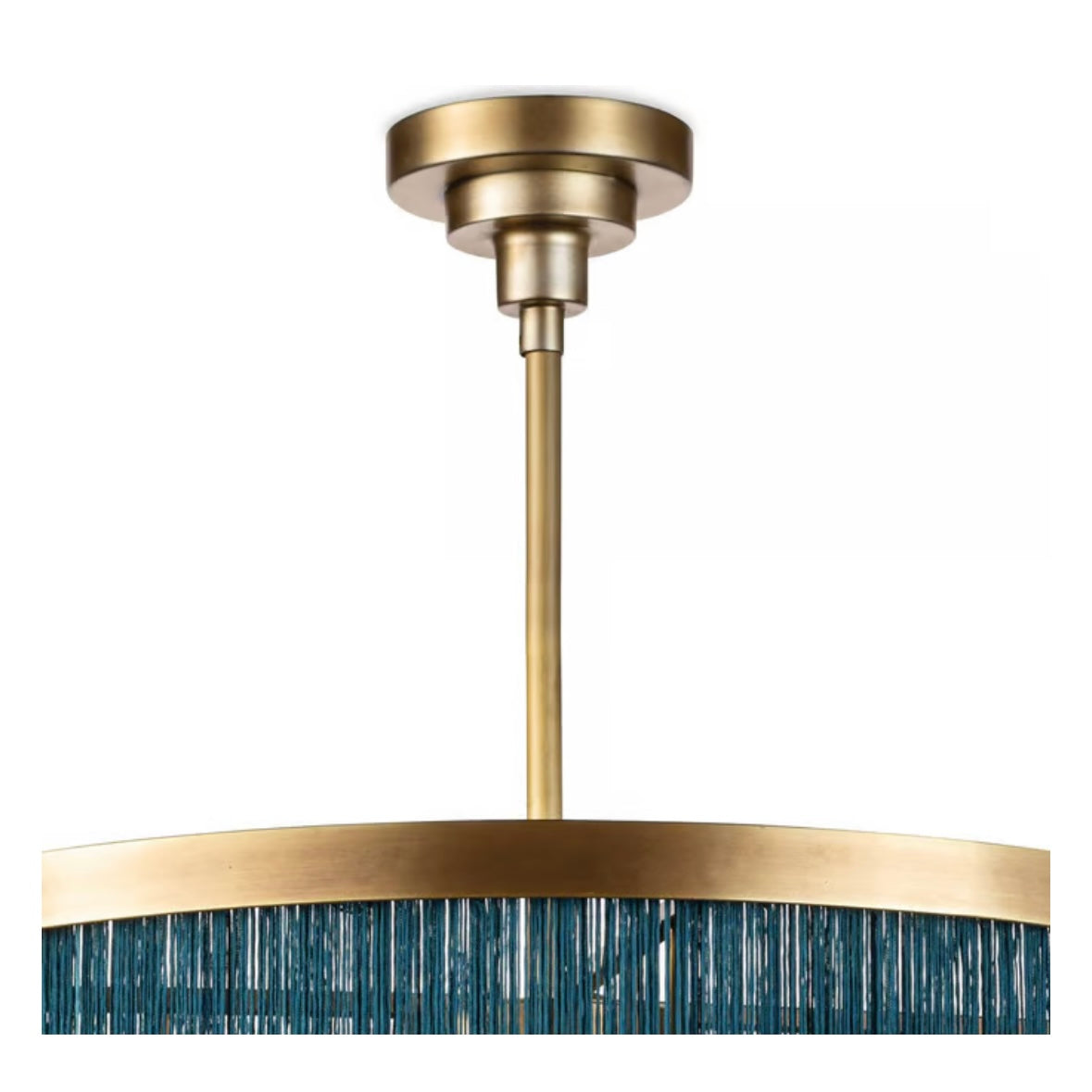 GORGEOUS! We absolutely adore this blue fringe chandelier by high-end maker, Regina Andrew. See the 'Cabaret' light online for $1,650, our price less and came to us brand new in the box!