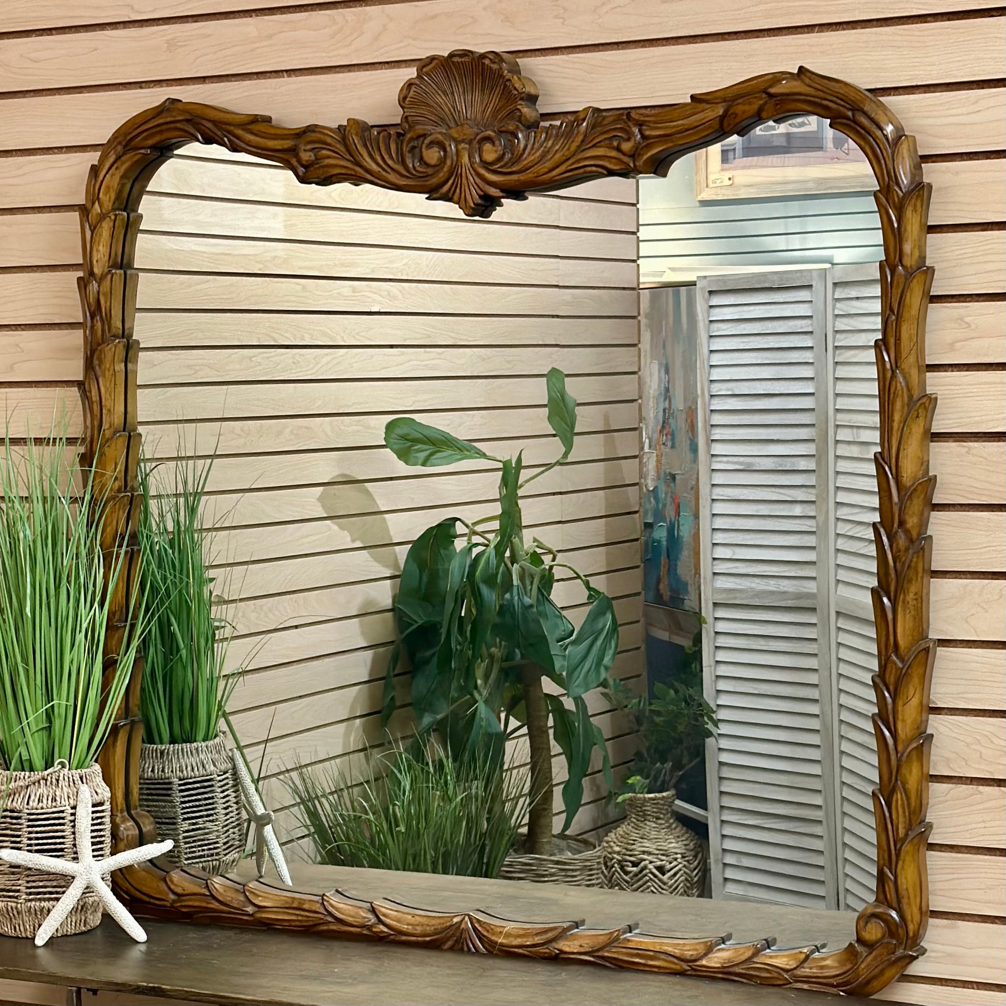 Upgrade your home with this Serge Roche style palm frond mirror. See on Chairish for $699, our price less!