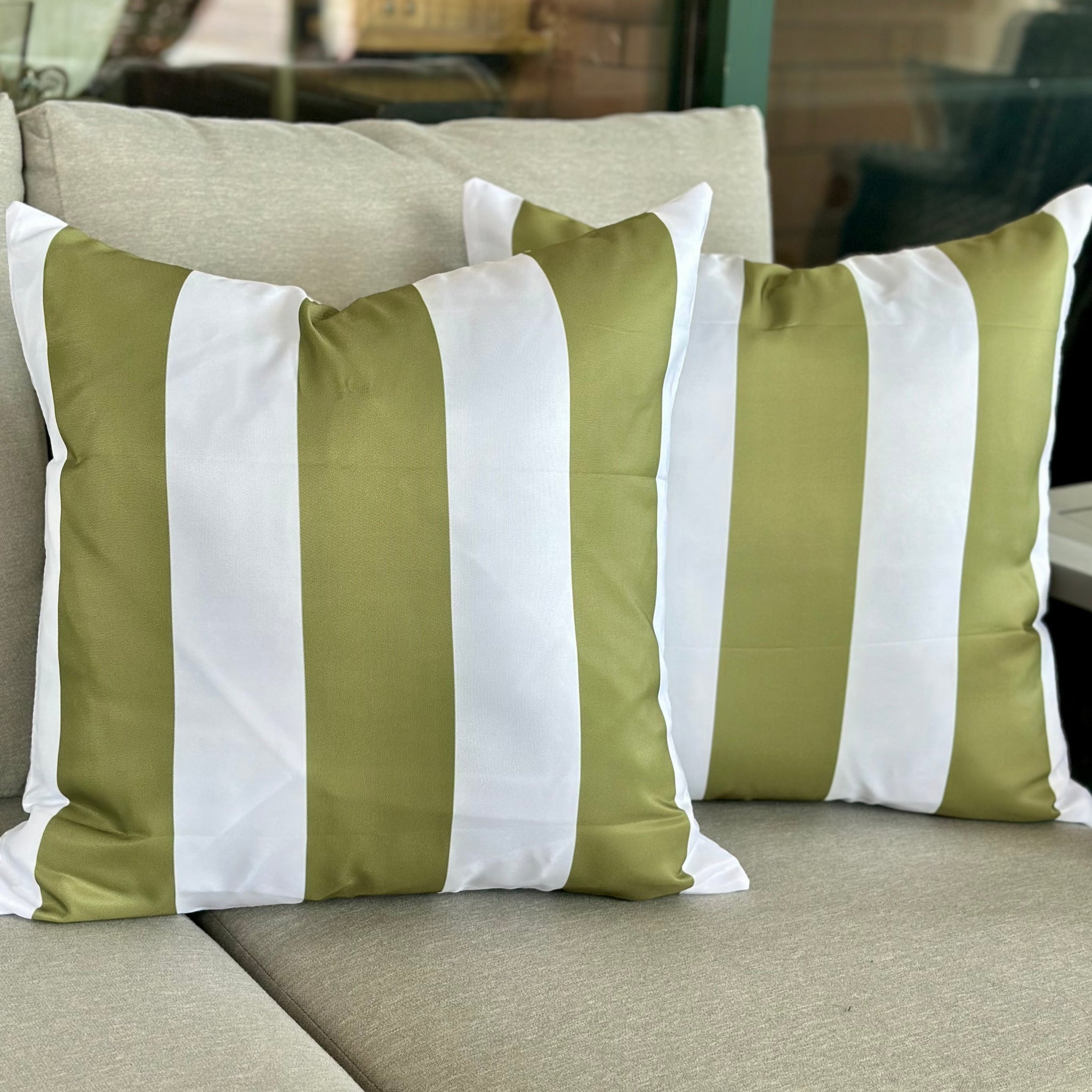 Green Striped Outdoor Pillow
