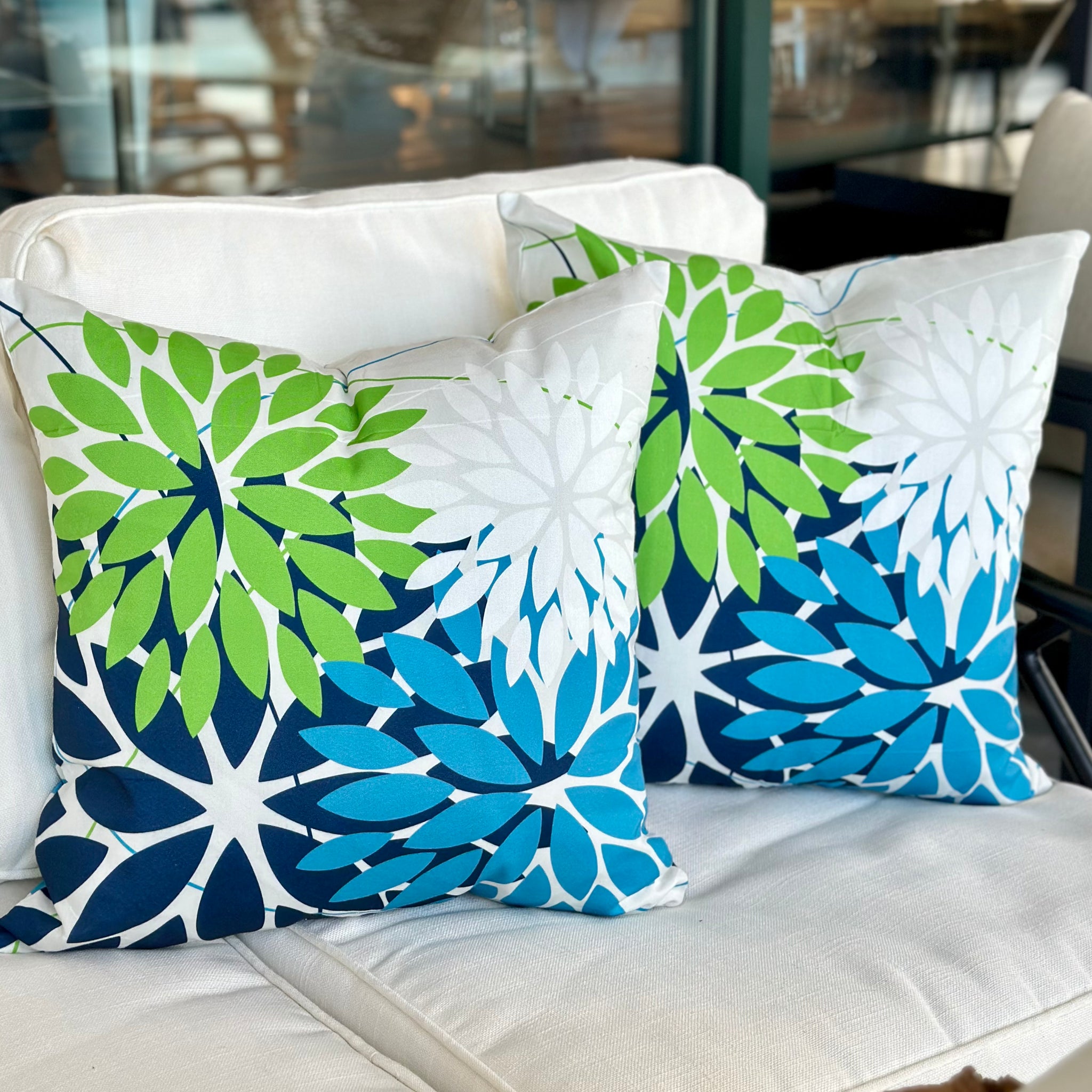 Blue/Green Floral Outdoor Pillow
