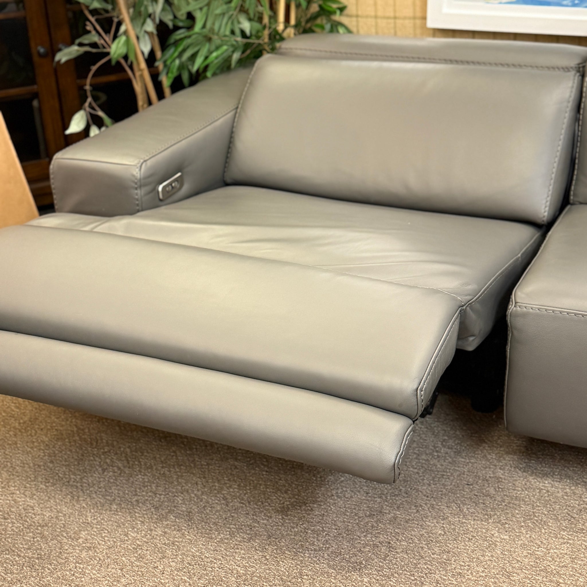 Wowza! Superb quality sectional featuring power recliners on either end, adjustable head rests, and the softest genuine Italian leather in charcoal! By Creation Leather, similar sectionals retail over $10,000, our price THOUSANDS less and in LIKE-NEW condition!