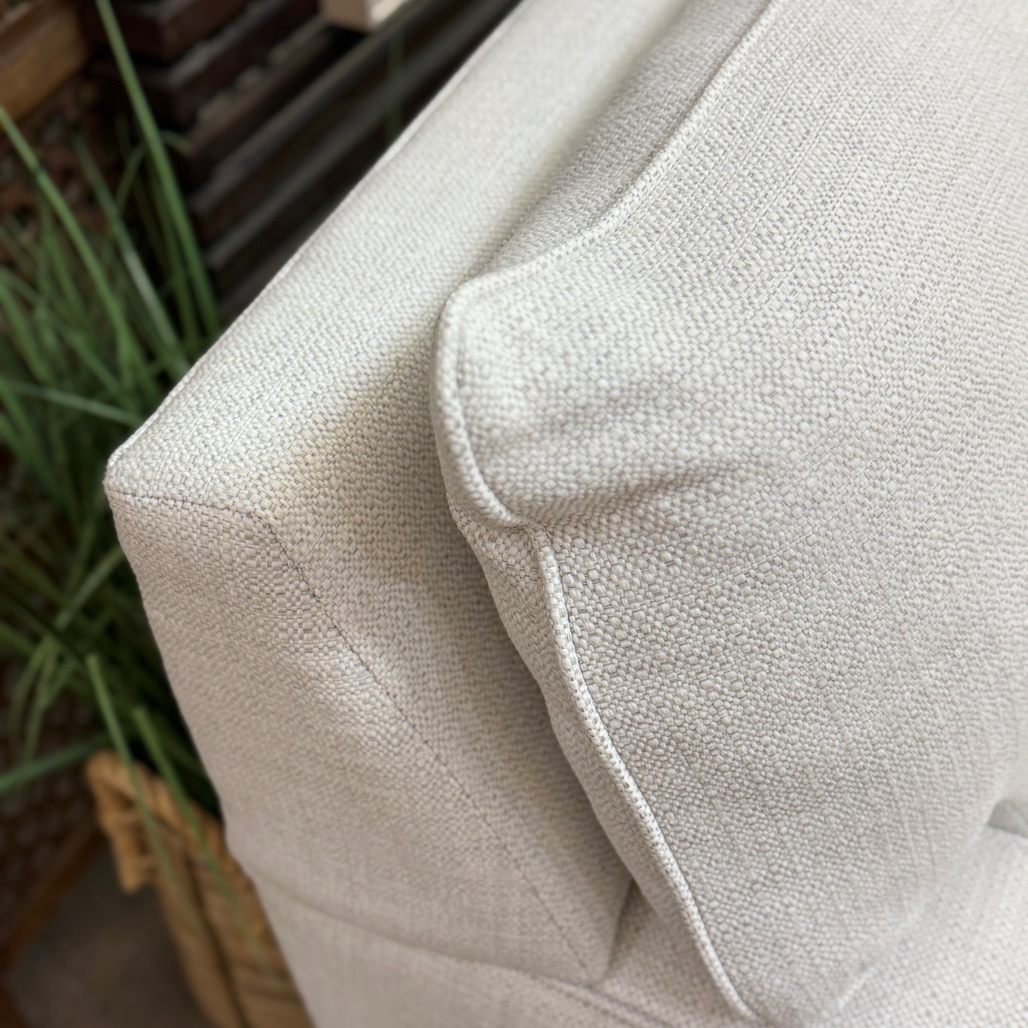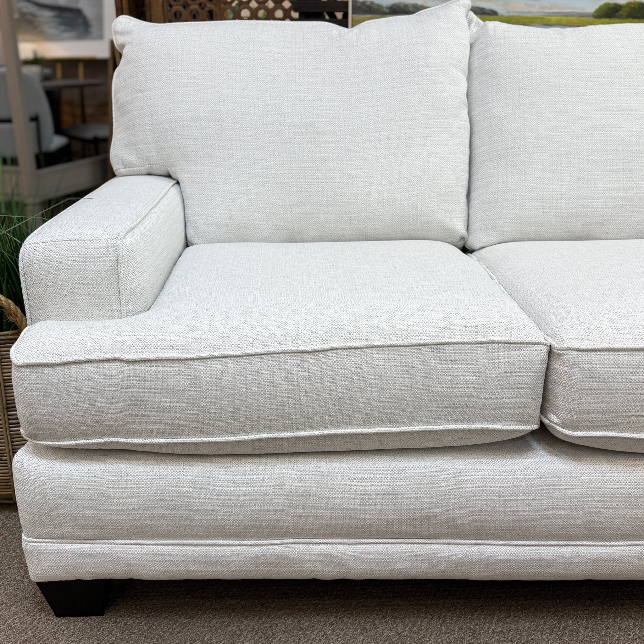 Cozy three piece sectional just in and brand new! Features durable ivory revolution upholstery and modern track arms.