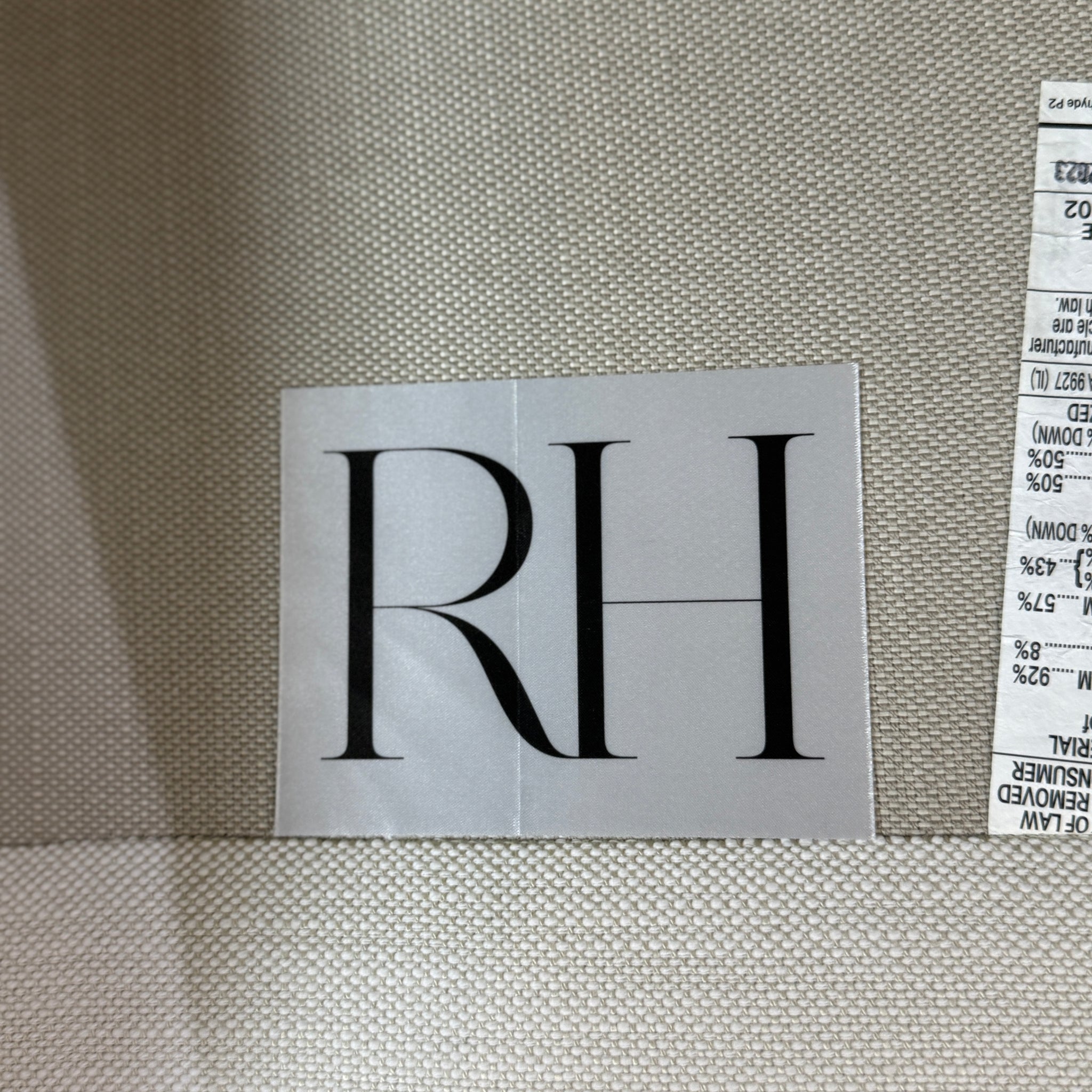CONSIGNMENT SCORE! This wide arm sofa in DURABLE performance fabric by Restoration Hardware features classic lines with modern track arms. Similar sofas retail $5000+, our price less and in LIKE-NEW condition.