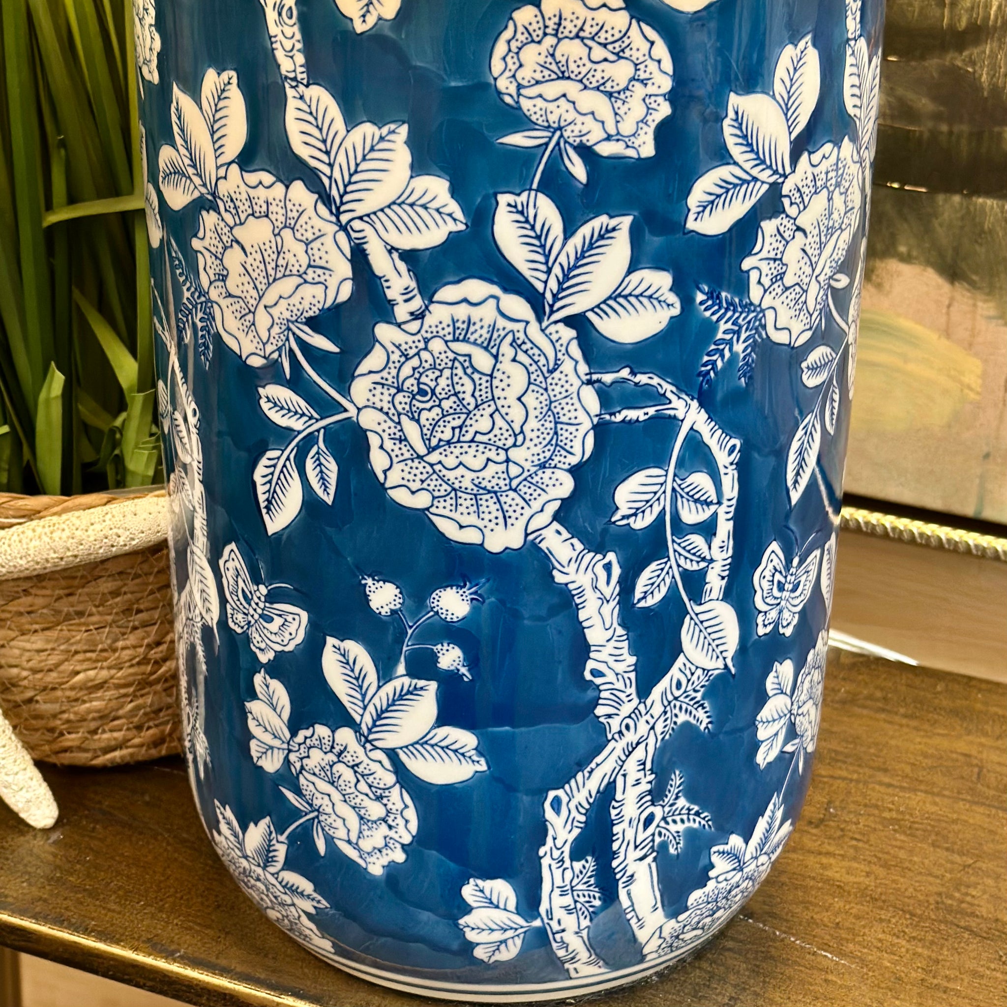 Stunning blue and white floral lamp just in on consignment. See the 'Fiore' lamp online for $390, our price less and in excellent condition!