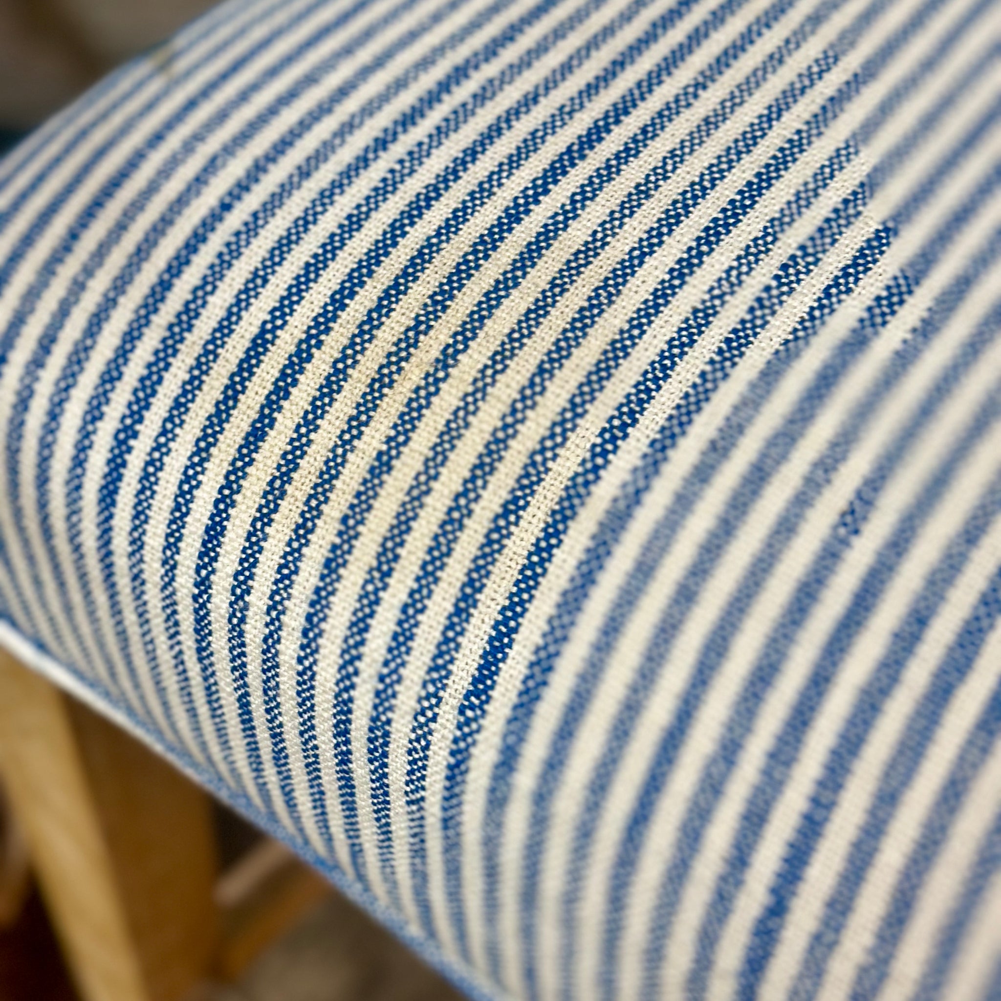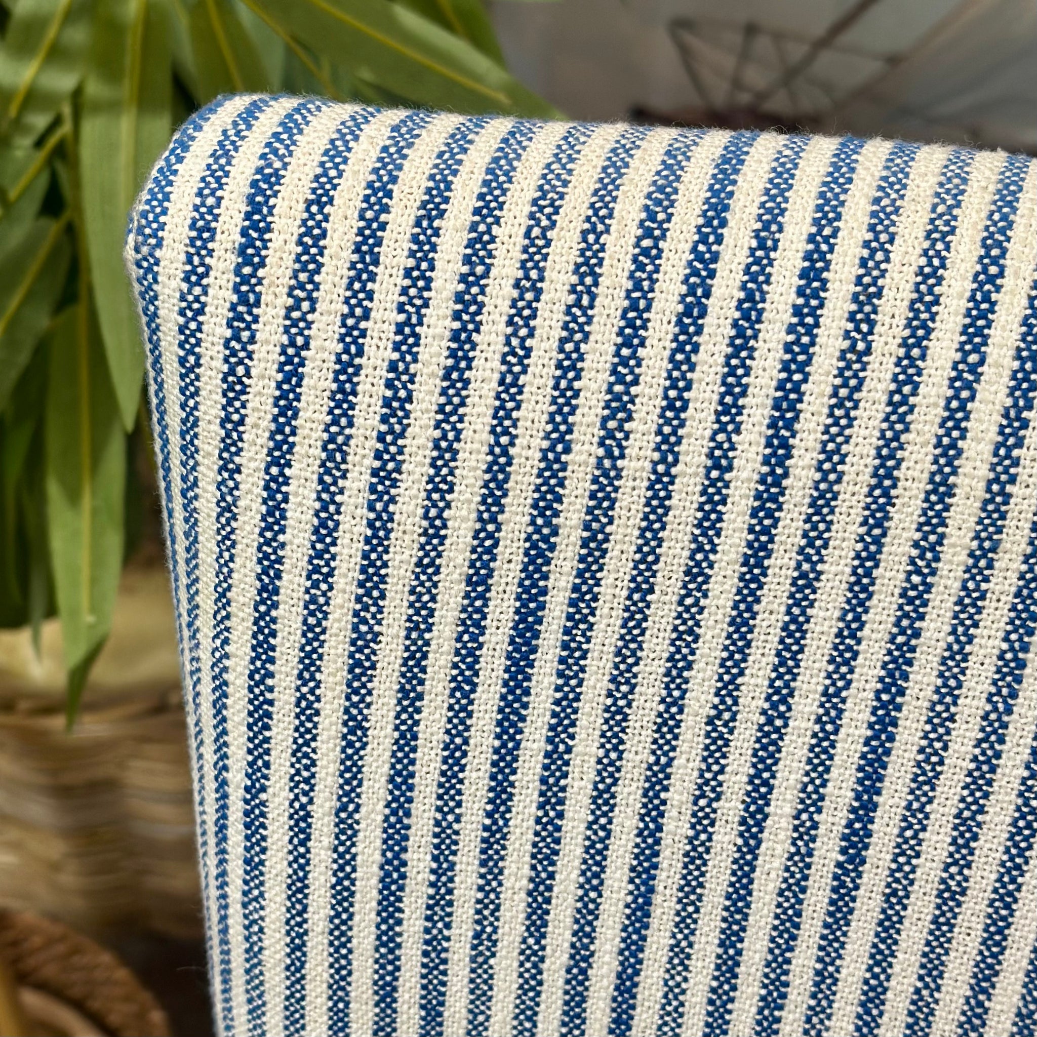 The perfect blue & white striped stools for a coastal kitchen! On consignment and in excellent condition. Sold as a pair.