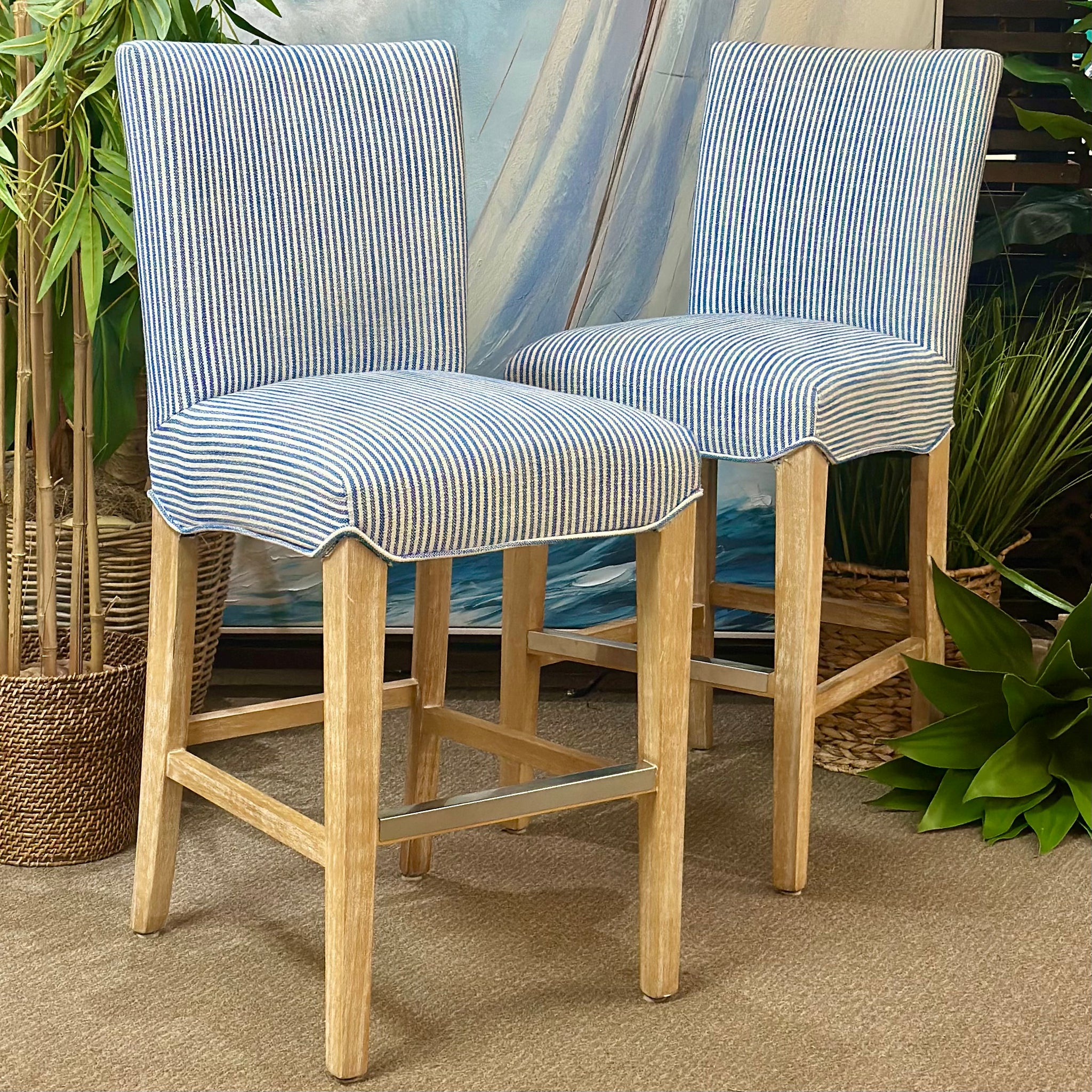 Set/2 Blue/White Striped Counter Stools