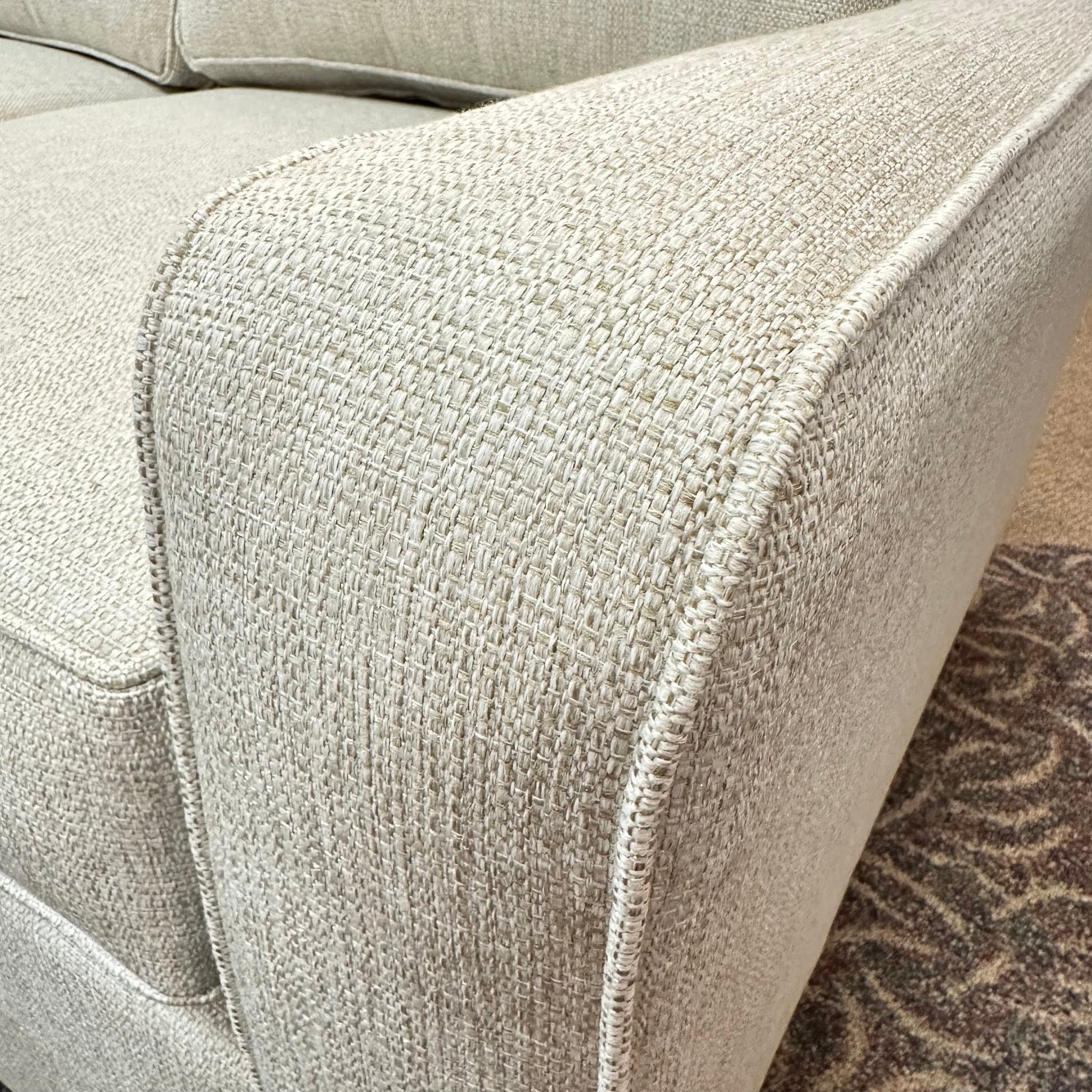 Made in North Carolina! This brand new sectional features a hardwood construction with modern wedge arms and durable off-white Revolution fabric. A great family friendly sectional!