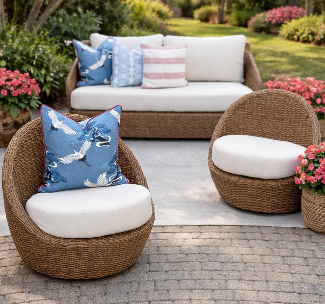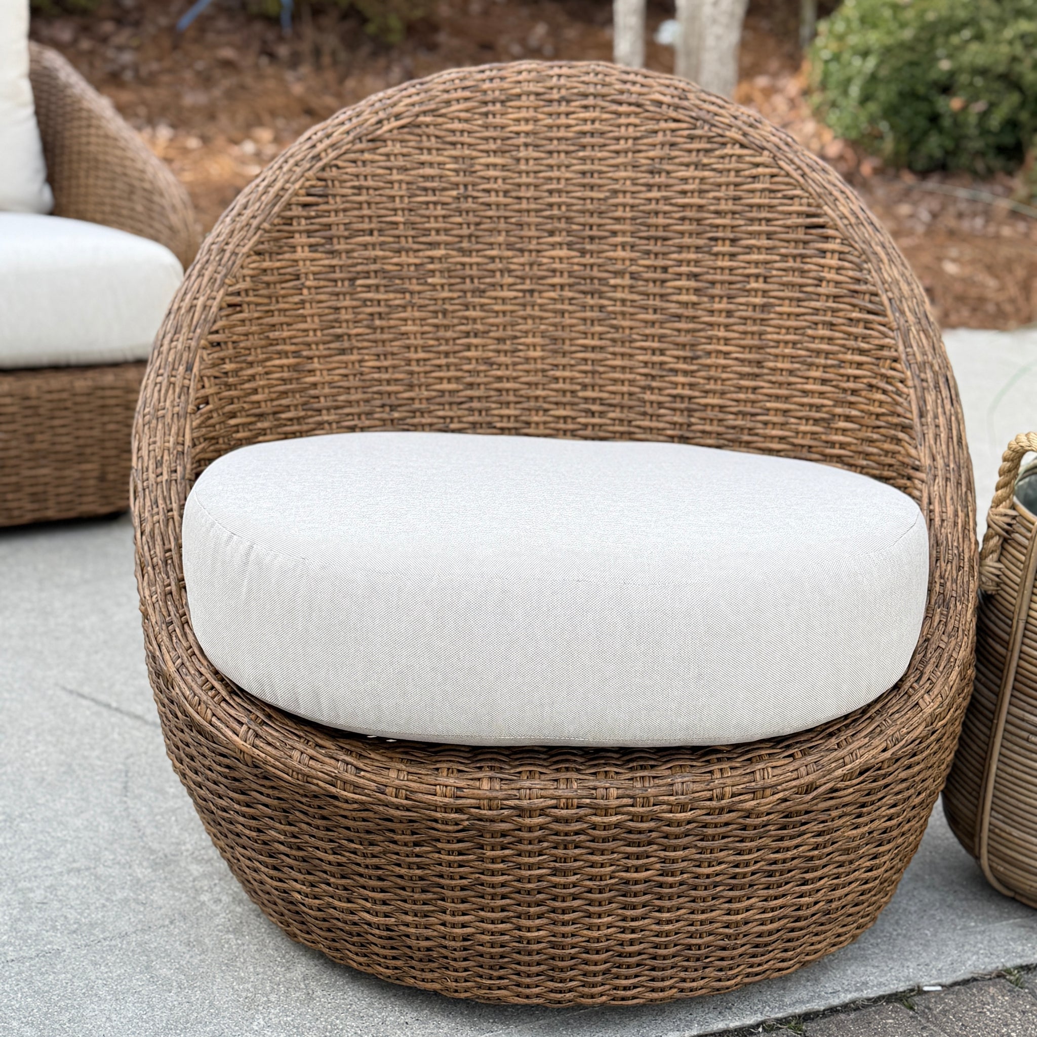 This set is thoughtfully designed with all-weather wicker that offers the timeless look with enhanced durability. Each piece features a sturdy aluminum frame paired with solution-dyed, high-performance outdoor fabric that’s UV-resistant and easy to maintain. Finished with stainless steel hardware to resist rust and extend longevity—this set is built for stylish, worry-free outdoor living.