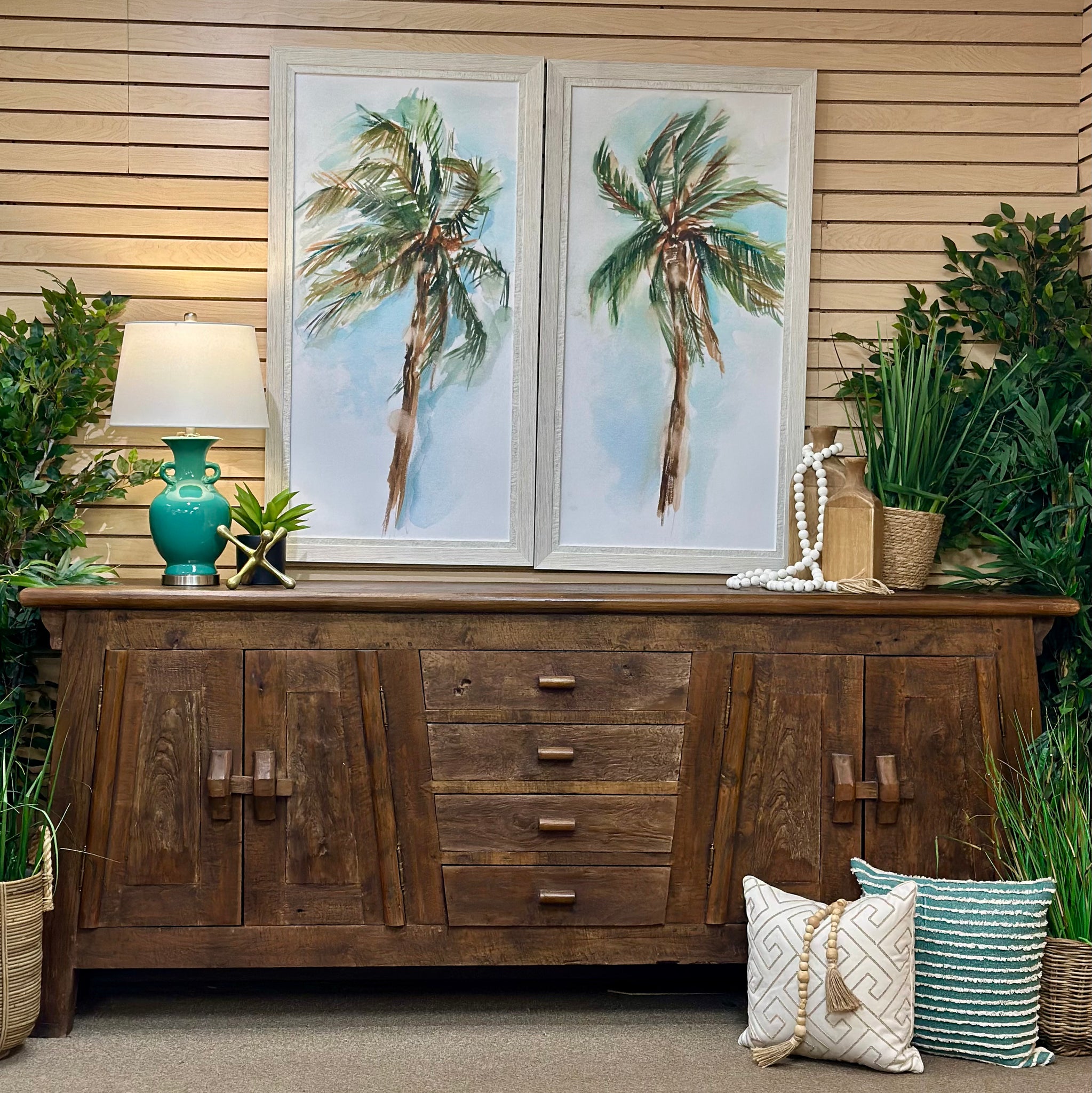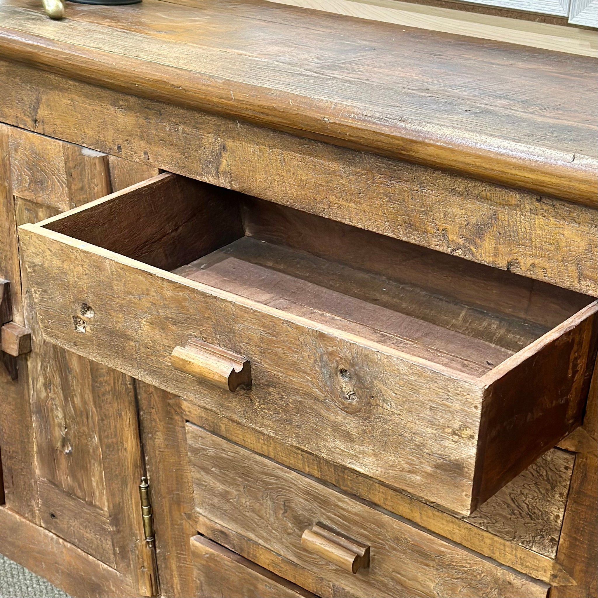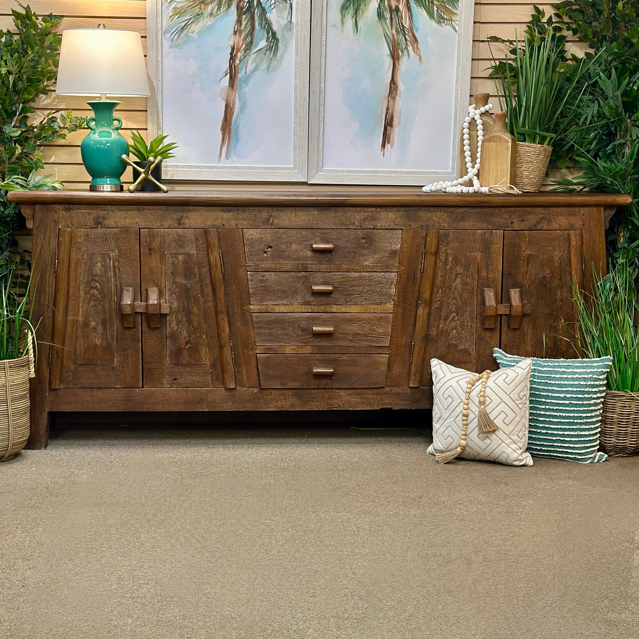 Make a statement with this large handsome teak cabinet. Features plenty of storage, and features teak wood in a rustic finish. In great condition. From a local high end store retailing over $3,000.
