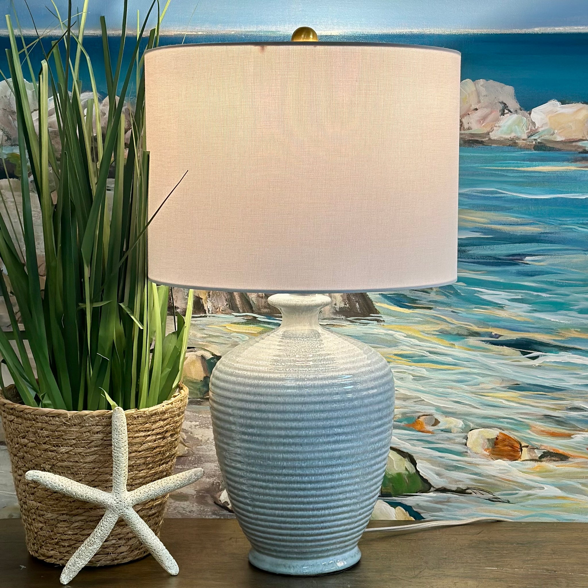Blue Ribbed Lamp