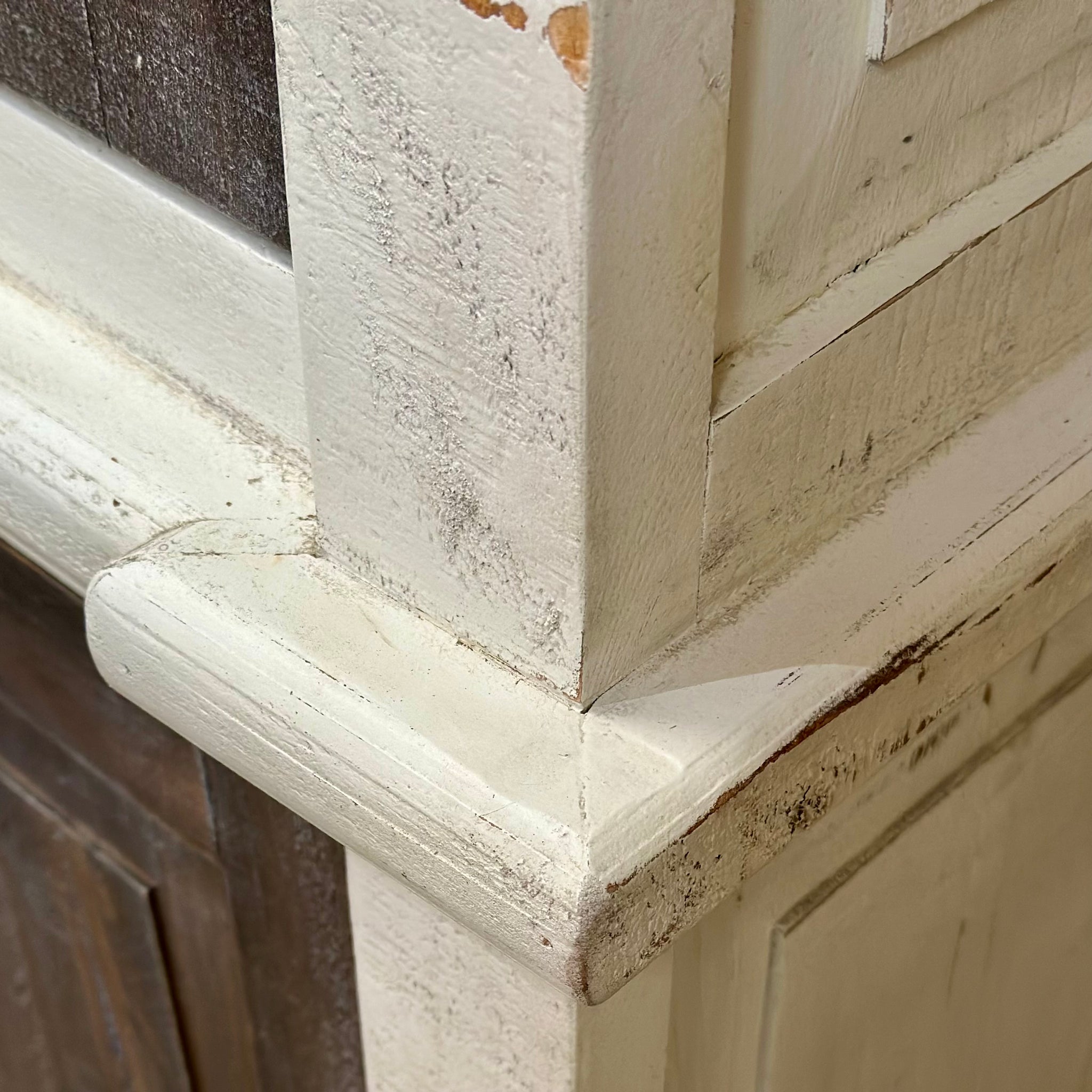 French Country style display cabinet from quality manufacturer Vintage Furniture. The 'Nero' features an antique white finish with elegant, detailed door fronts. On consignment and in excellent condition. Retails $1,000+, our price less!