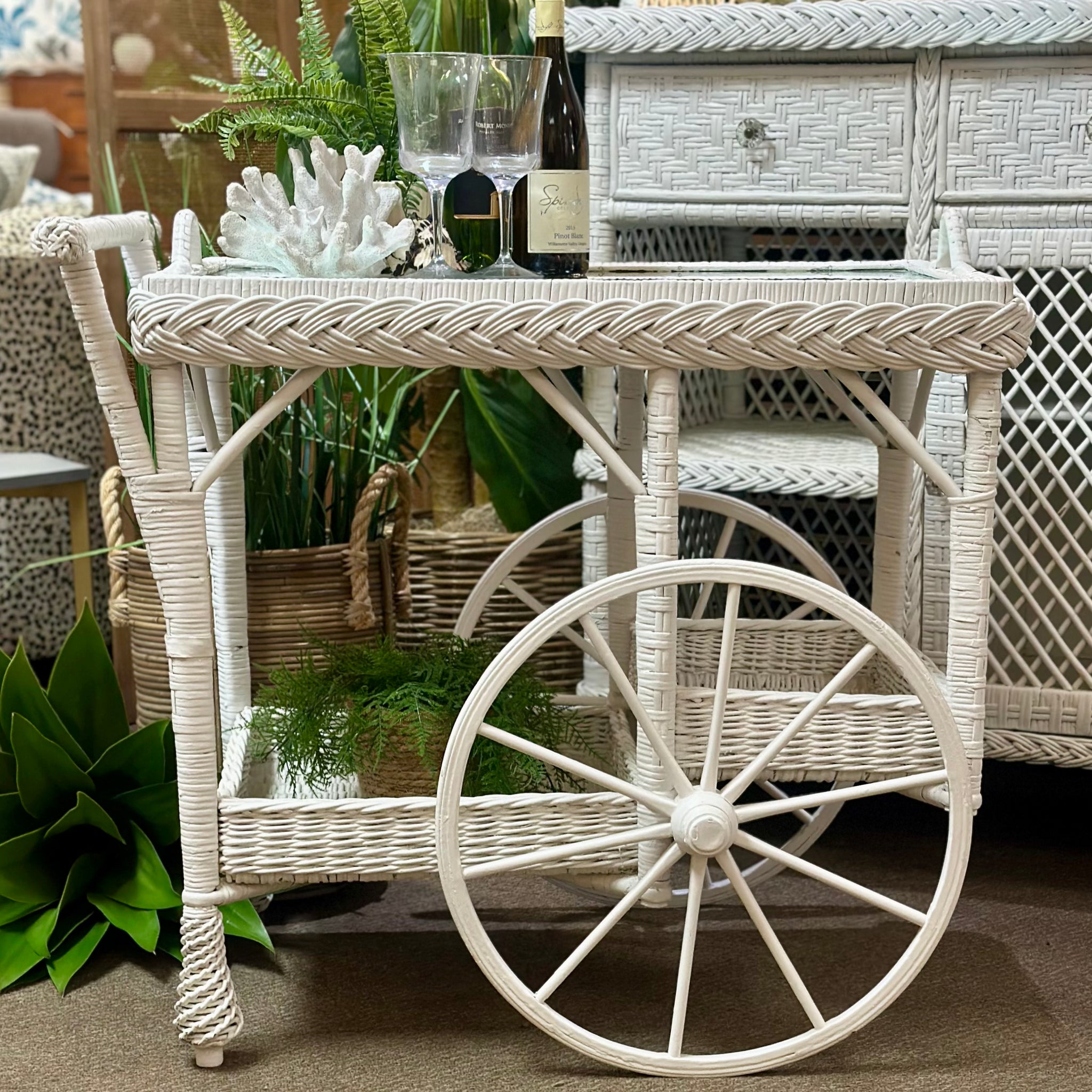 • Load image into Gallery viewer, White Wicker Bar Cart